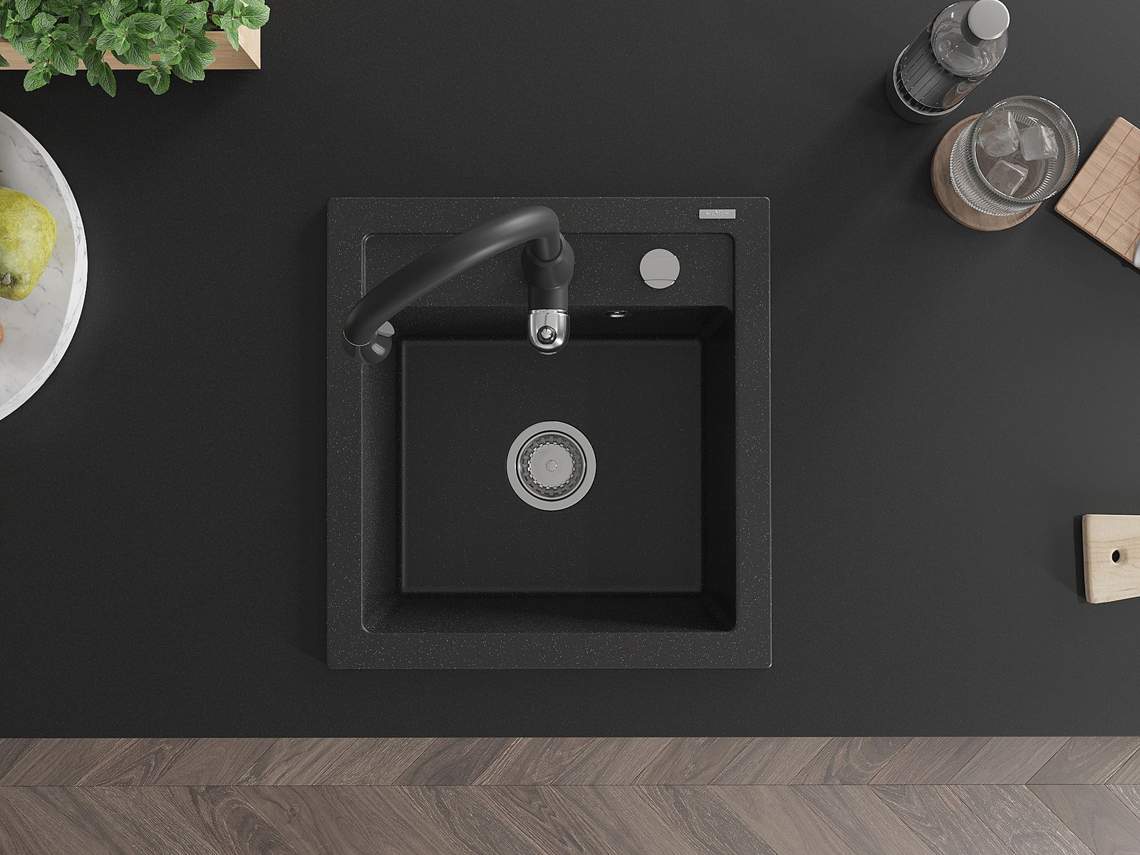 L'évier a un trou sous-meulé de 35 mm de diamètre à percer soi-même. Il peut être utilisé, entre autres, pour installer un distributeur de liquide, ce qui éliminera la présence de bouteilles en plastique dans la cuisine et lui donnera une finition élégante.