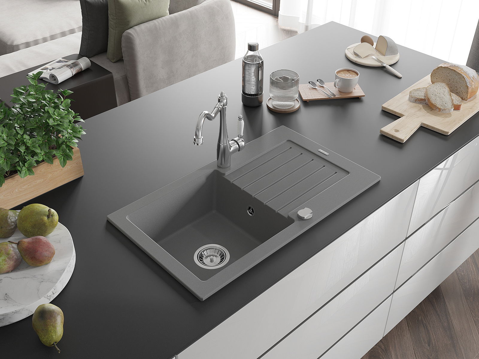 L'évier a été fabriqué en granit de haute qualité. Il constitue un complément élégant et surtout pratique à toute cuisine, quel que soit son style. La haute qualité et la durabilité du granit garantissent une utilisation pendant de nombreuses années.