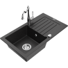 Mexen Pablo évier en granit 1 bac avec égouttoir et robinet de cuisine Carla, gris - 6510-71-670700-00