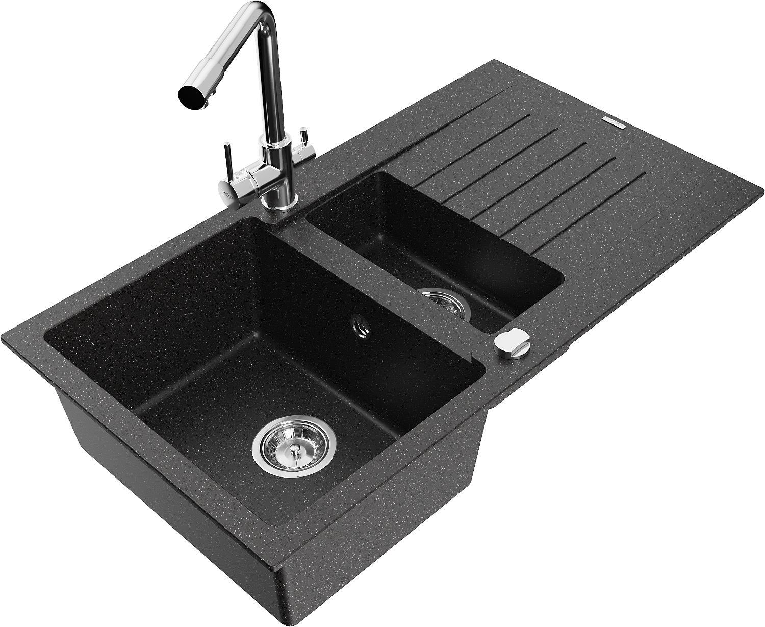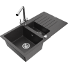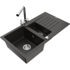 Mexen Matias évier en granit 1,5 bac avec égouttoir et robinet de cuisine Duero, noir/argent métallisé- 6502-73-671600-00