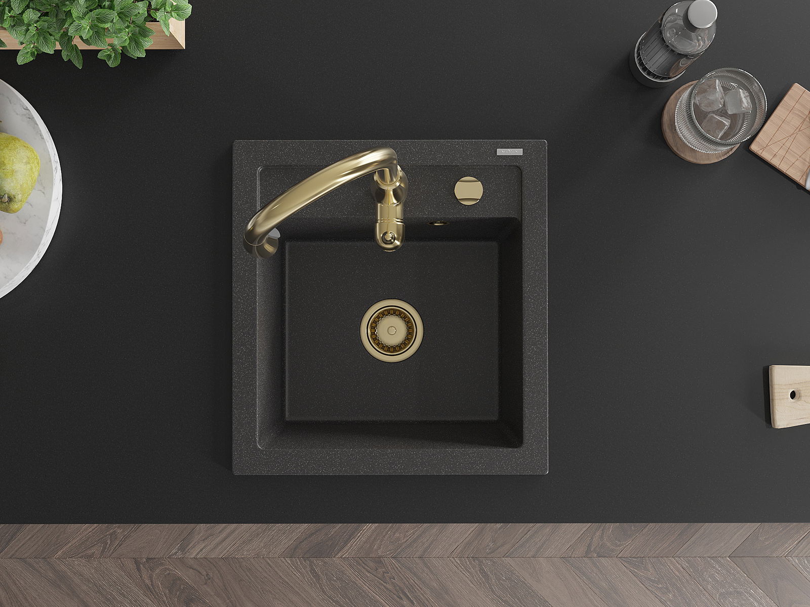 L'évier a un trou sous-meulé de 35 mm de diamètre à percer soi-même. Il peut être utilisé, entre autres, pour installer un distributeur de liquide, ce qui éliminera la présence de bouteilles en plastique dans la cuisine et lui donnera une finition élégante.