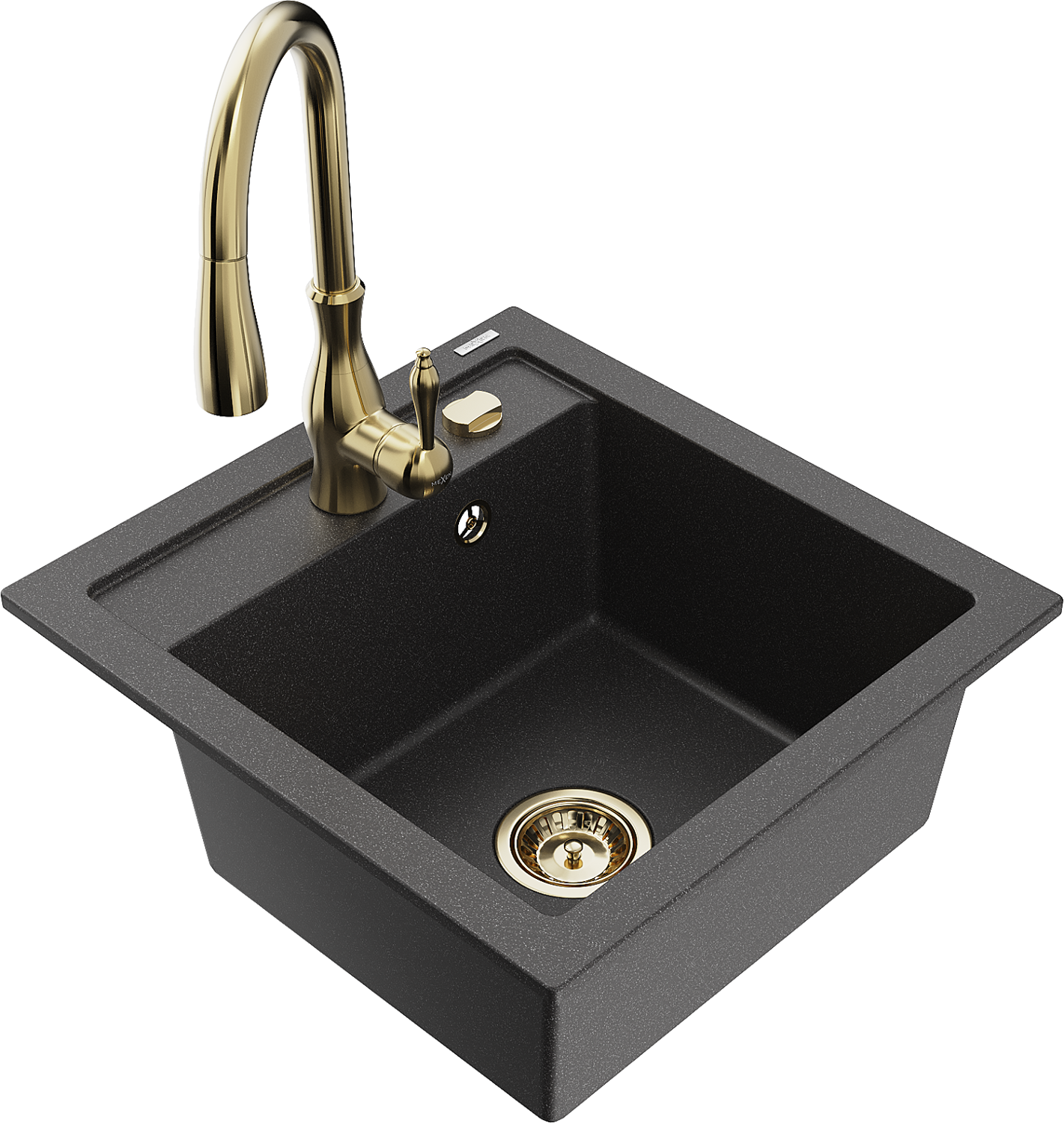 Mexen Vito évier en granit 1 bac avec robinet de cuisine Savita, noir moucheté - 6503-76-672601-50