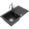 Mexen Pablo évier en granit à 1 bac avec égouttoir et robinet de cuisine Carla, noir moucheté - 6510-76-670700-00