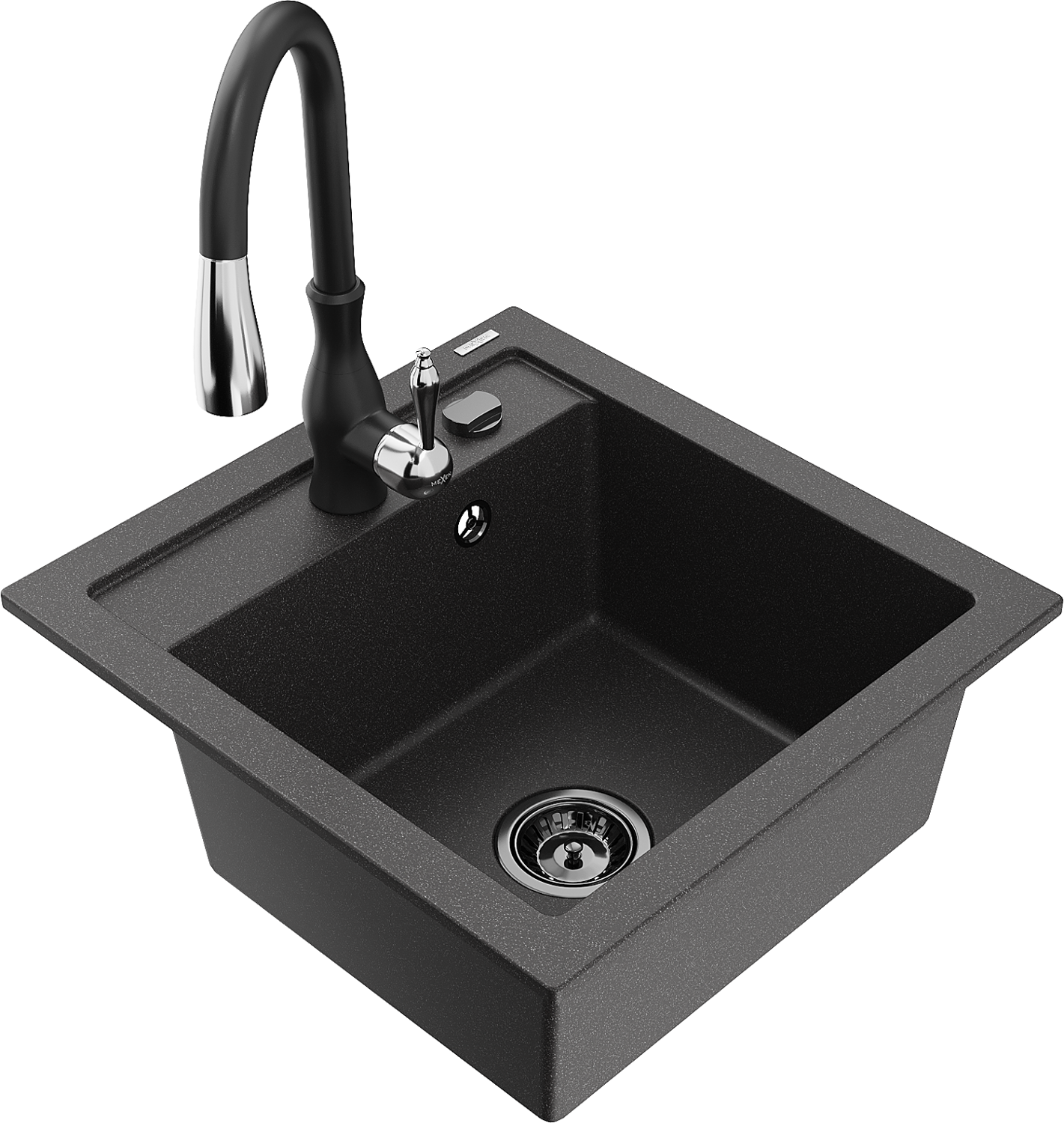 Mexen Vito évier en granit 1 compartiment avec robinet de cuisine Savita, noir moucheté - 6503-76-672601-70-B