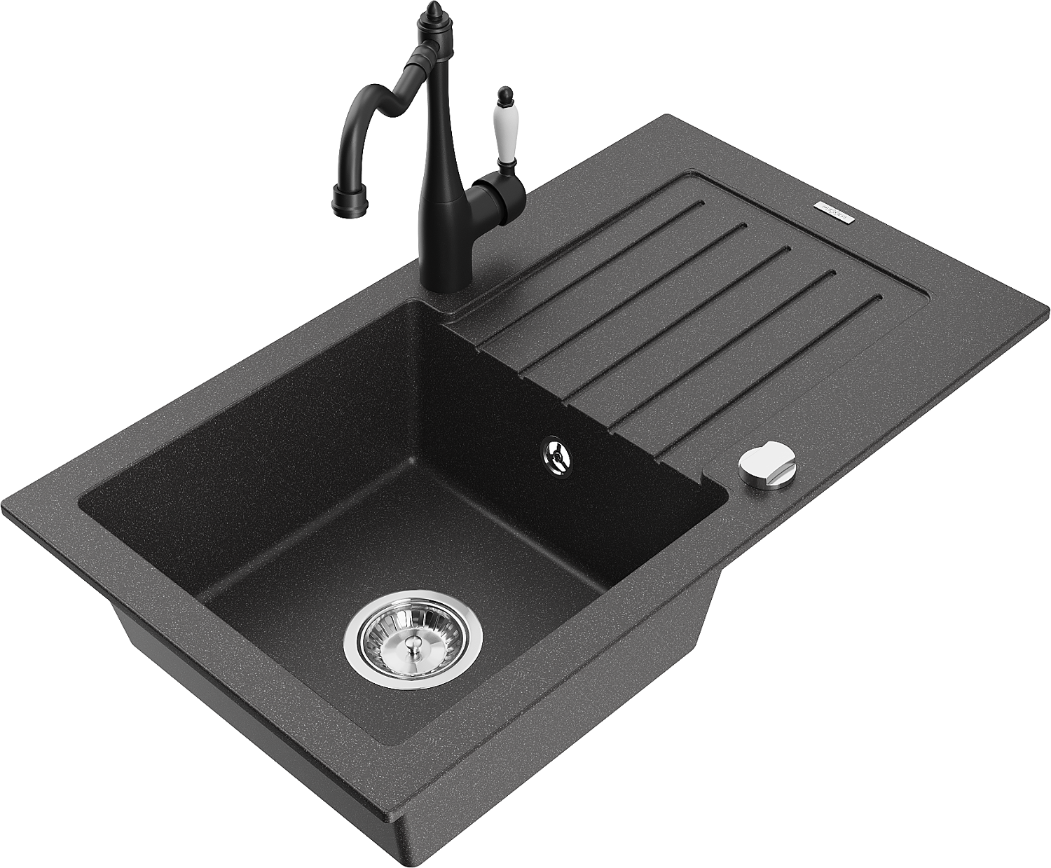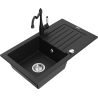 Mexen Pablo évier en granit 1 bac avec égouttoir et robinet de cuisine Carla, noir moucheté - 6510-76-670700-70