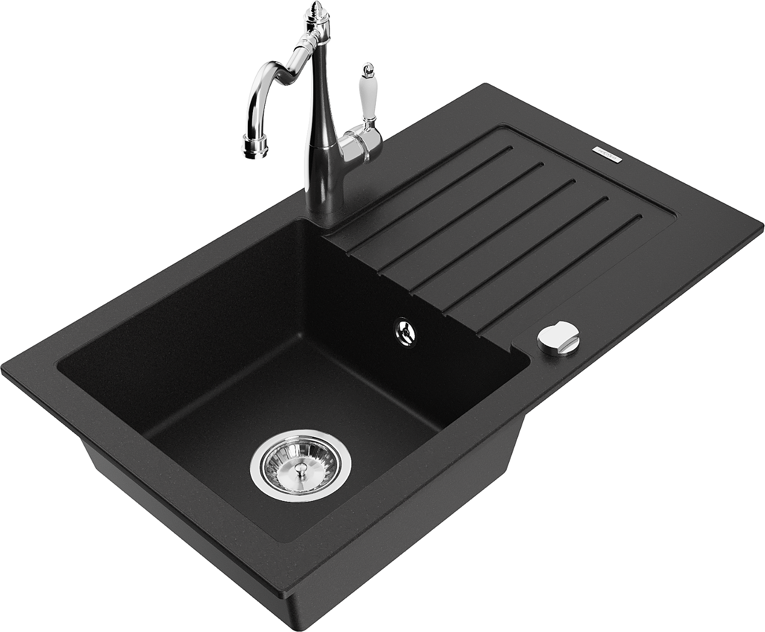 Mexen Pablo évier de cuisine en granit 1 bac avec égouttoir et robinet de cuisine Carla, noir - 6510-77-670700-00