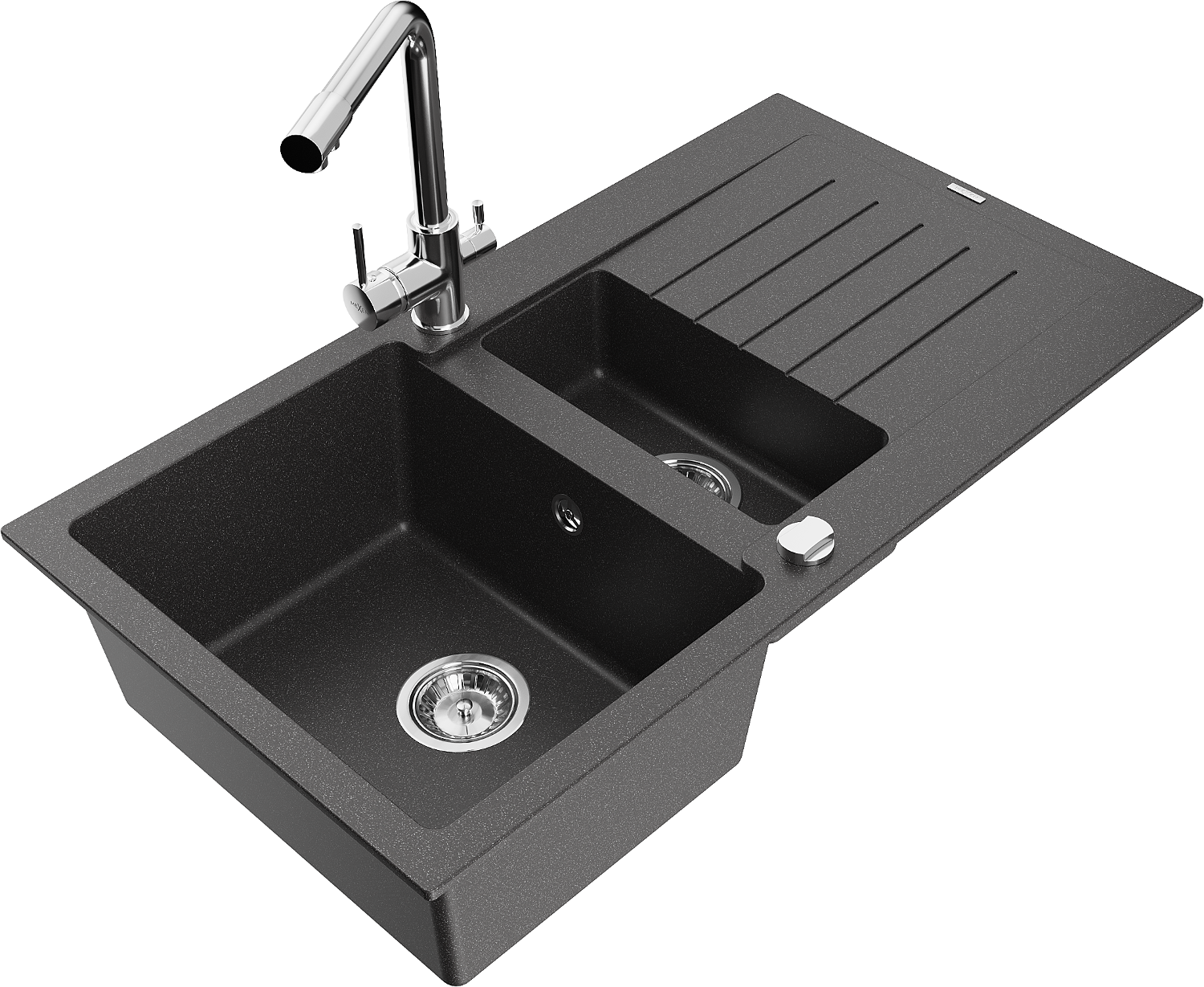 Mexen Matias évier en granit 1,5 cuve avec égouttoir et mitigeur Duero, noir moucheté - 6502-76-671600-00