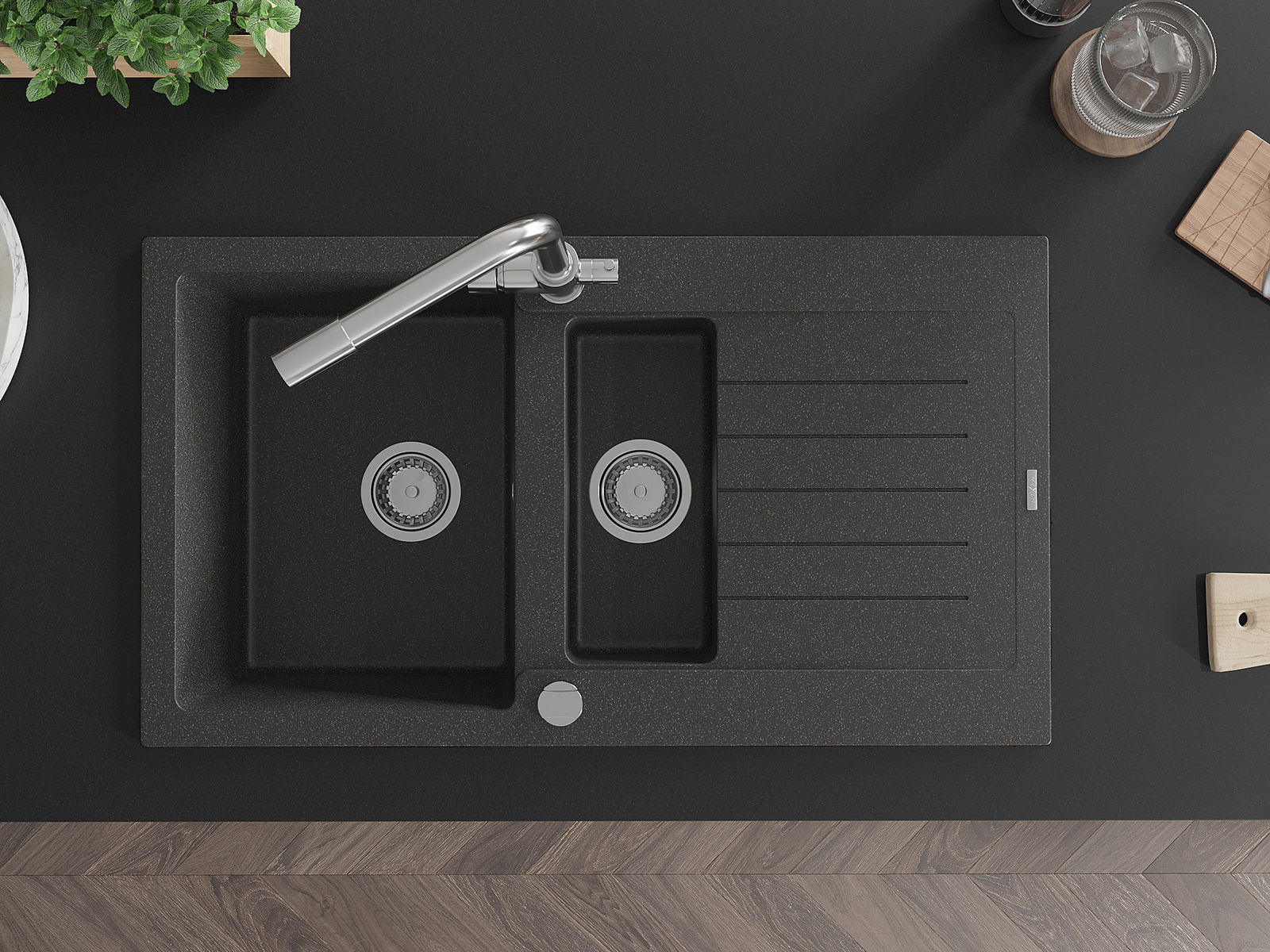 La surface de l'évier est très bien durcie, elle se distingue par une résistance exceptionnelle aux dommages mécaniques et aux rayures. Le matériau durable de fabrication permet de profiter de l'apparence de l'évier pendant de nombreuses années d'utilisation.