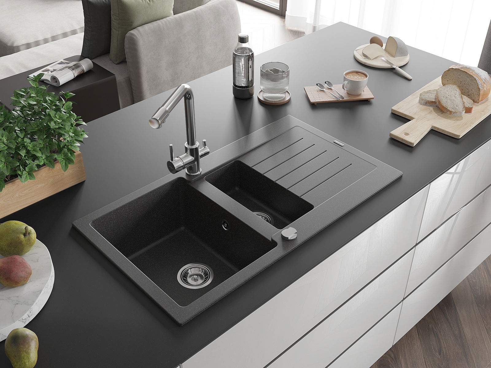 L'évier se distingue par une résistance exceptionnelle aux hautes températures et à leurs changements soudains, ce qui évite toute déformation même sous l'effet prolongé de l'eau chaude.
