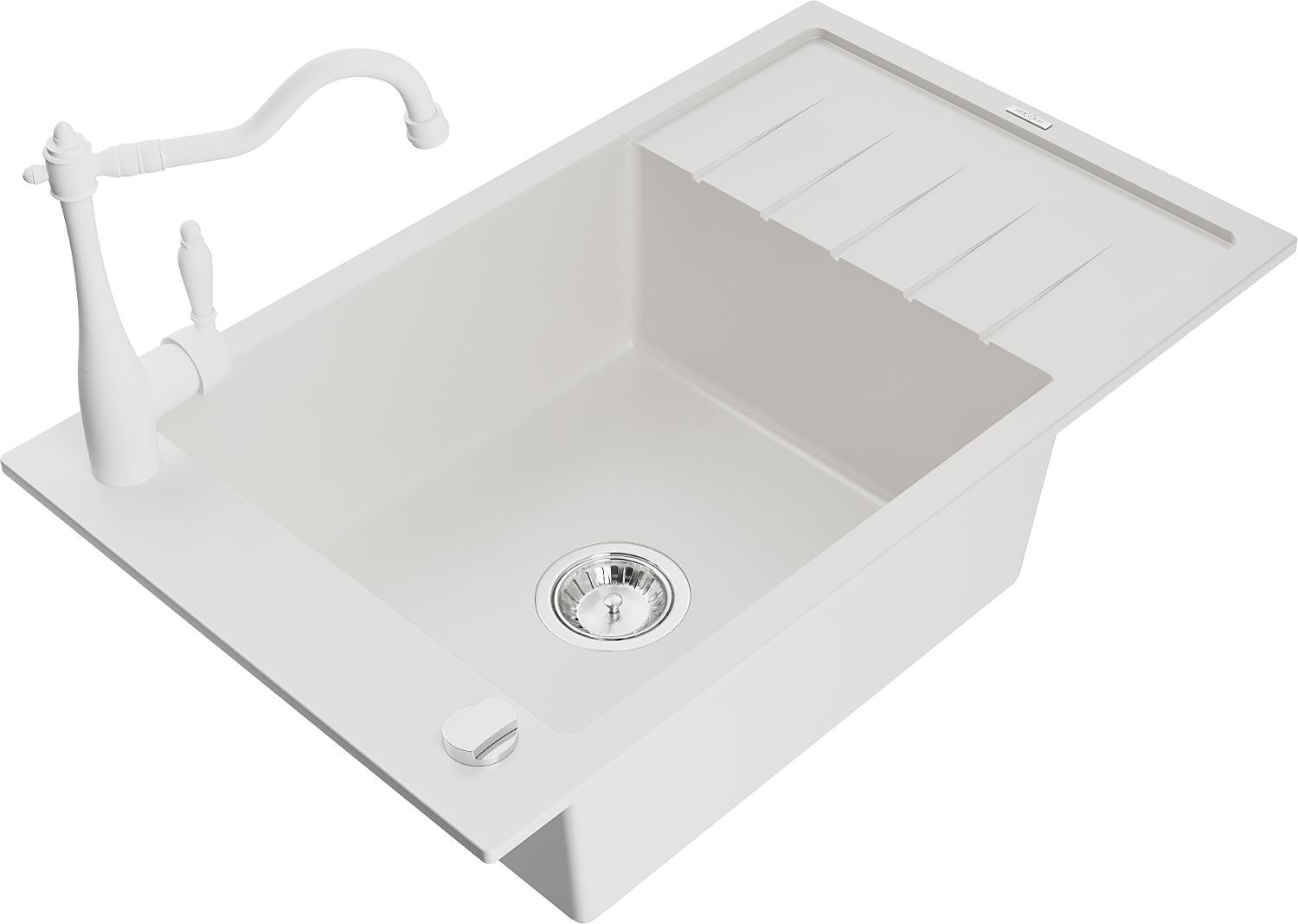 Mexen Elias évier en granit à 1 cuve avec égouttoir et mitigeur de cuisine Carla, blanc - 6511-20-670700-20