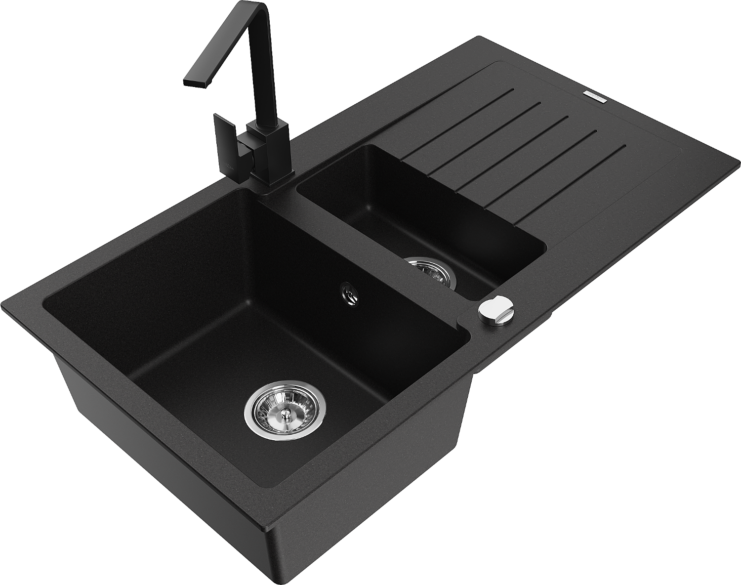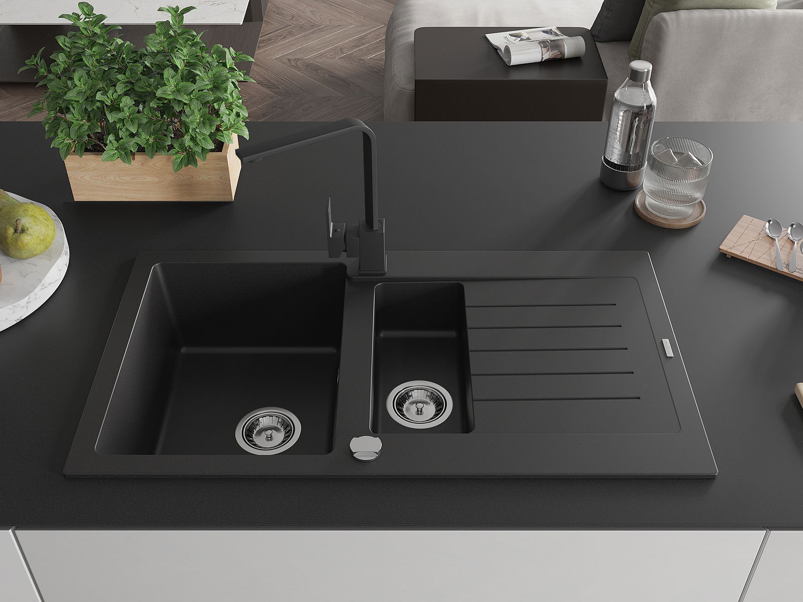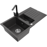 Mexen Matias évier en granit 1,5 bac avec égouttoir et robinet de cuisine Rita, noir - 6502-77-670300-70