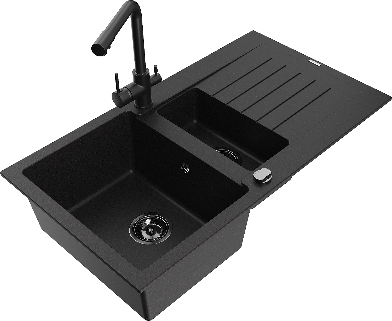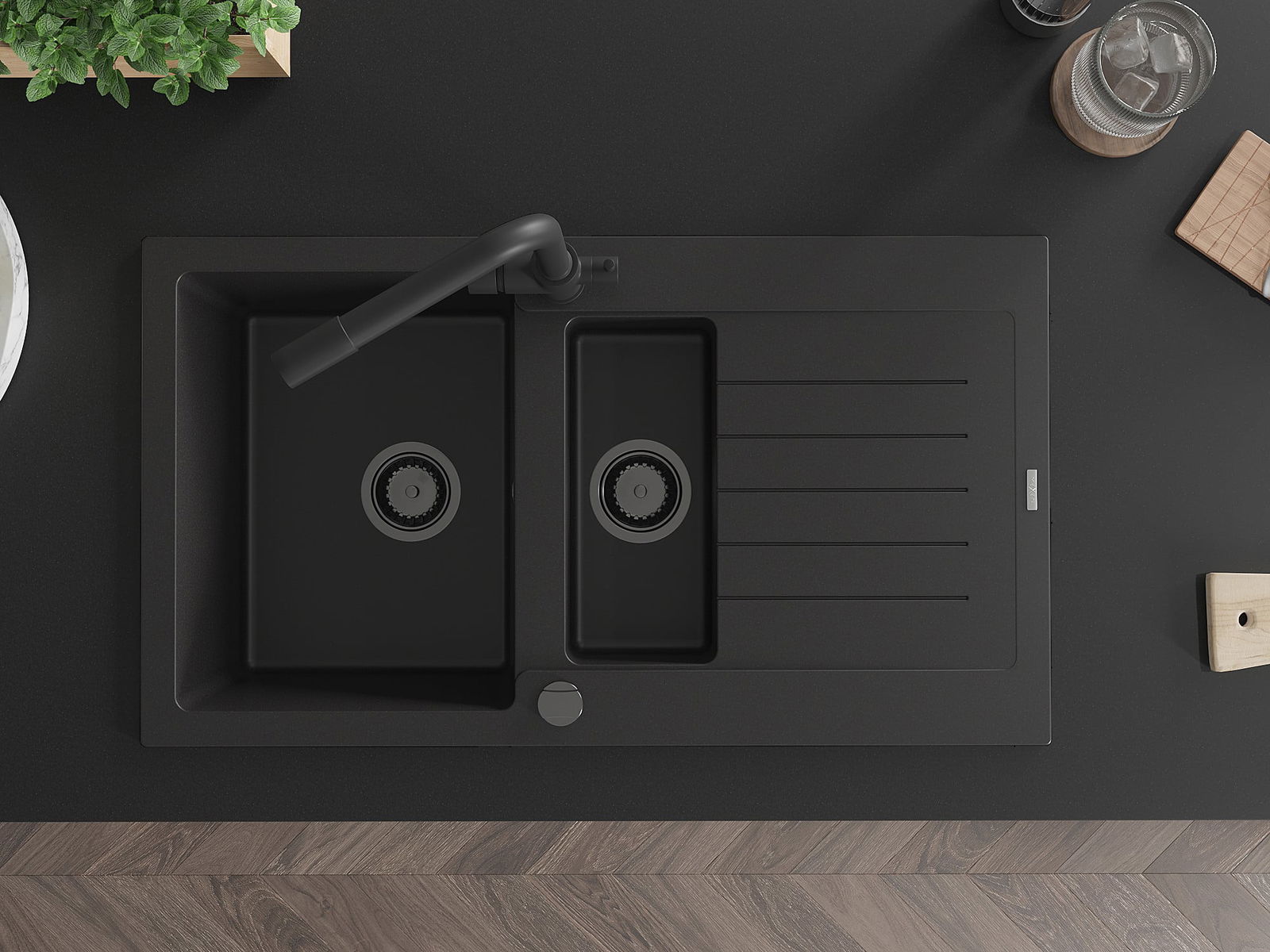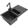 Mexen Matias évier en granit 1,5 bac avec égouttoir et robinet de cuisine Duero, noir - 6502-77-671600-70-B