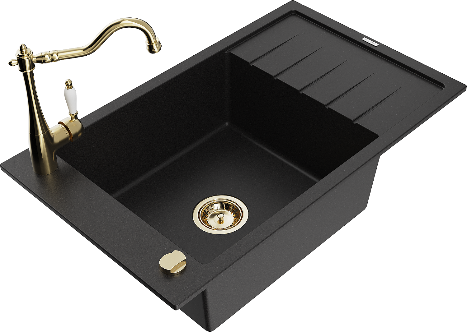 Mexen Elias évier en granit 1 bac avec égouttoir et robinet de cuisine Carla, noir - 6511-77-670700-50