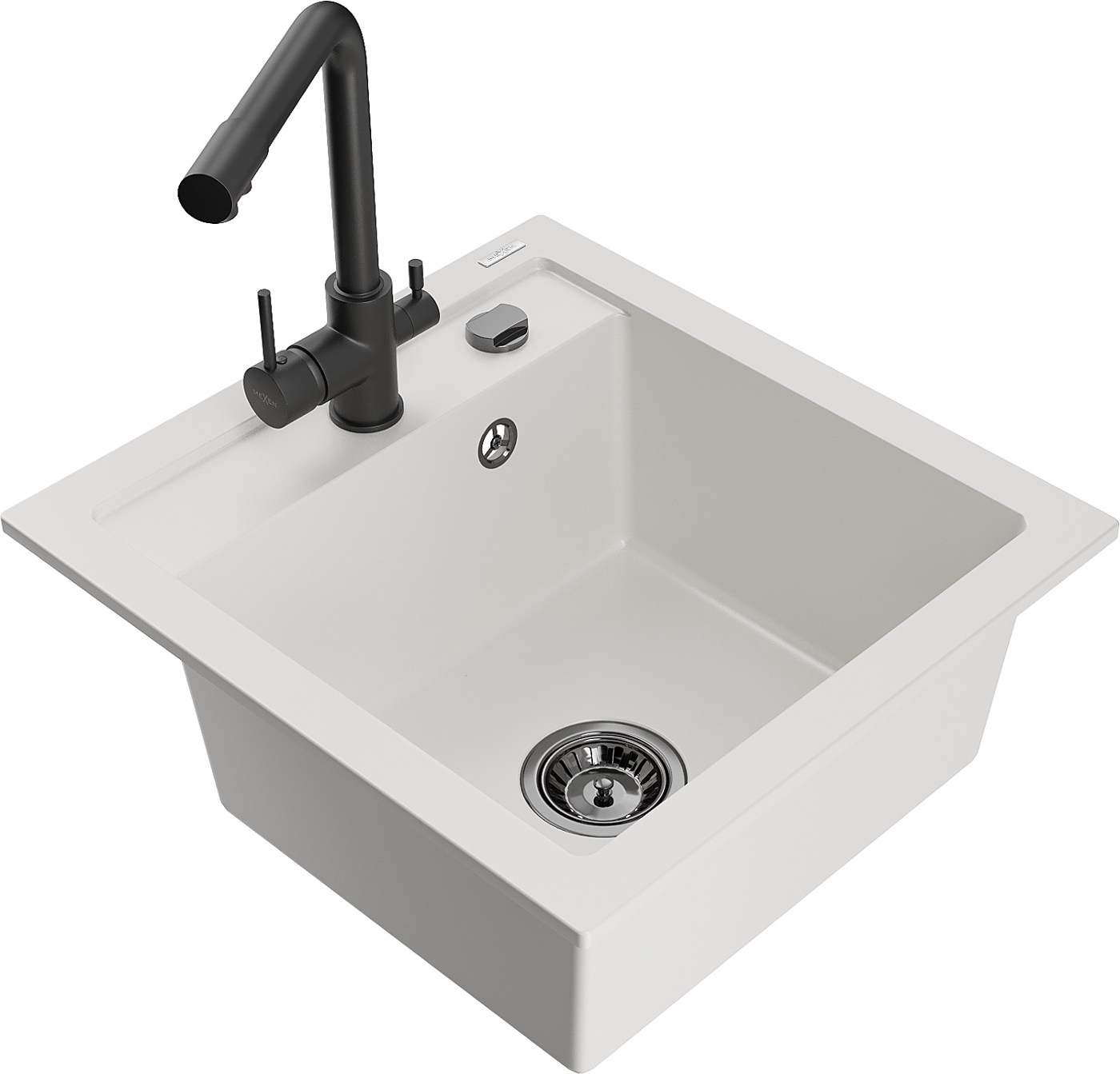 Mexen Vito évier de cuisine en granit 1 bac avec robinet de cuisine Duero, blanc - 6503-20-671600-70