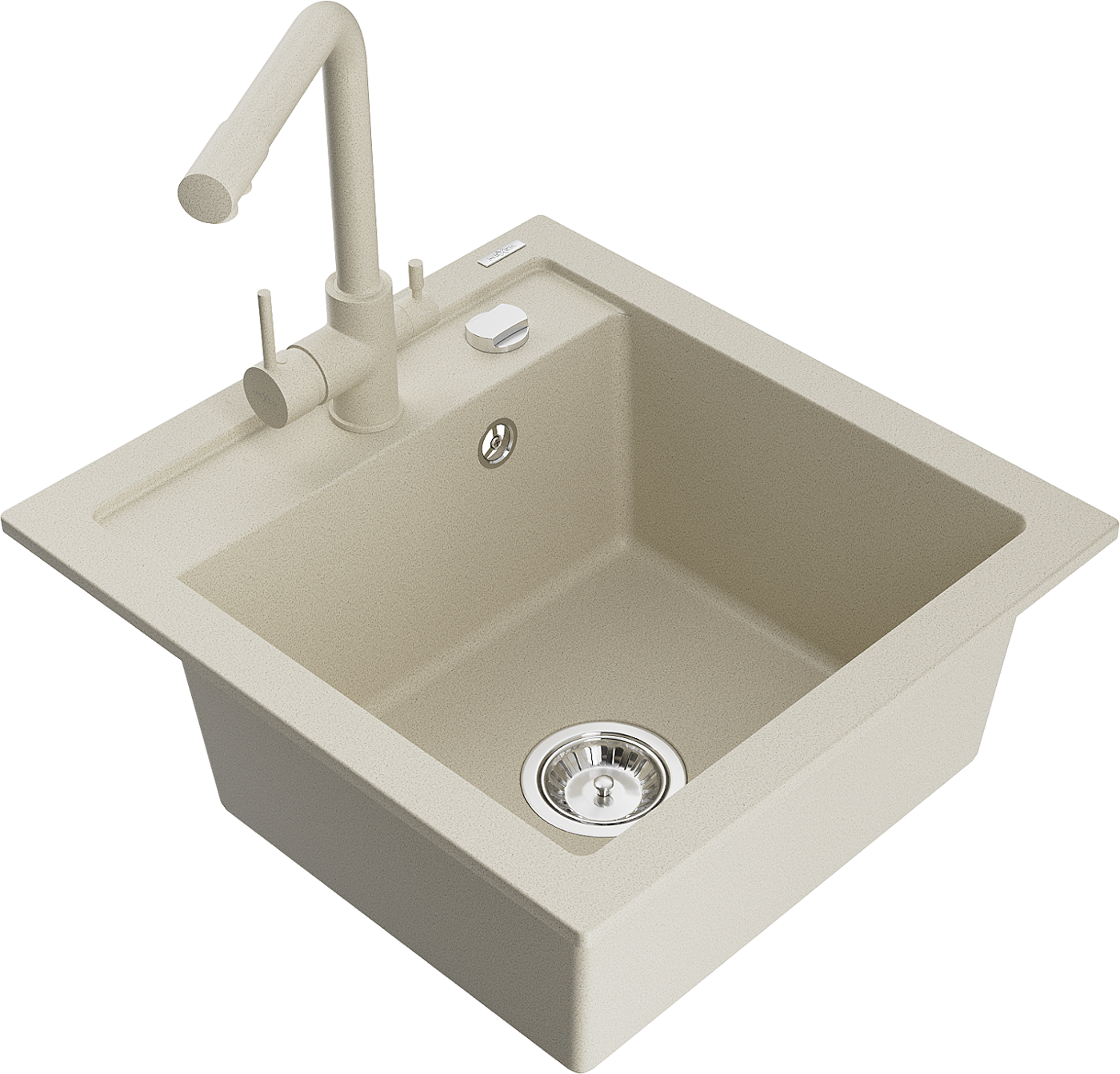 Mexen Vito évier en granit à 1 bac avec robinet de cuisine Duero, beige - 6503-69-671600-69