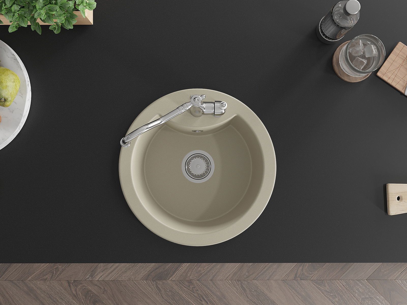 Mexen Diego évier en granit 1 bac avec mitigeur de cuisine Carla, beige - 6512-69-670700-00