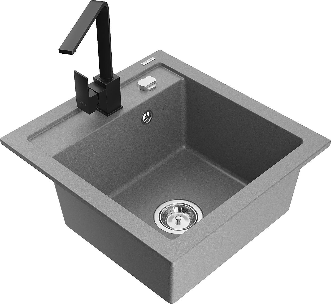 Mexen Vito évier en granit 1 bac avec robinet de cuisine Rita, gris - 6503-71-670300-70