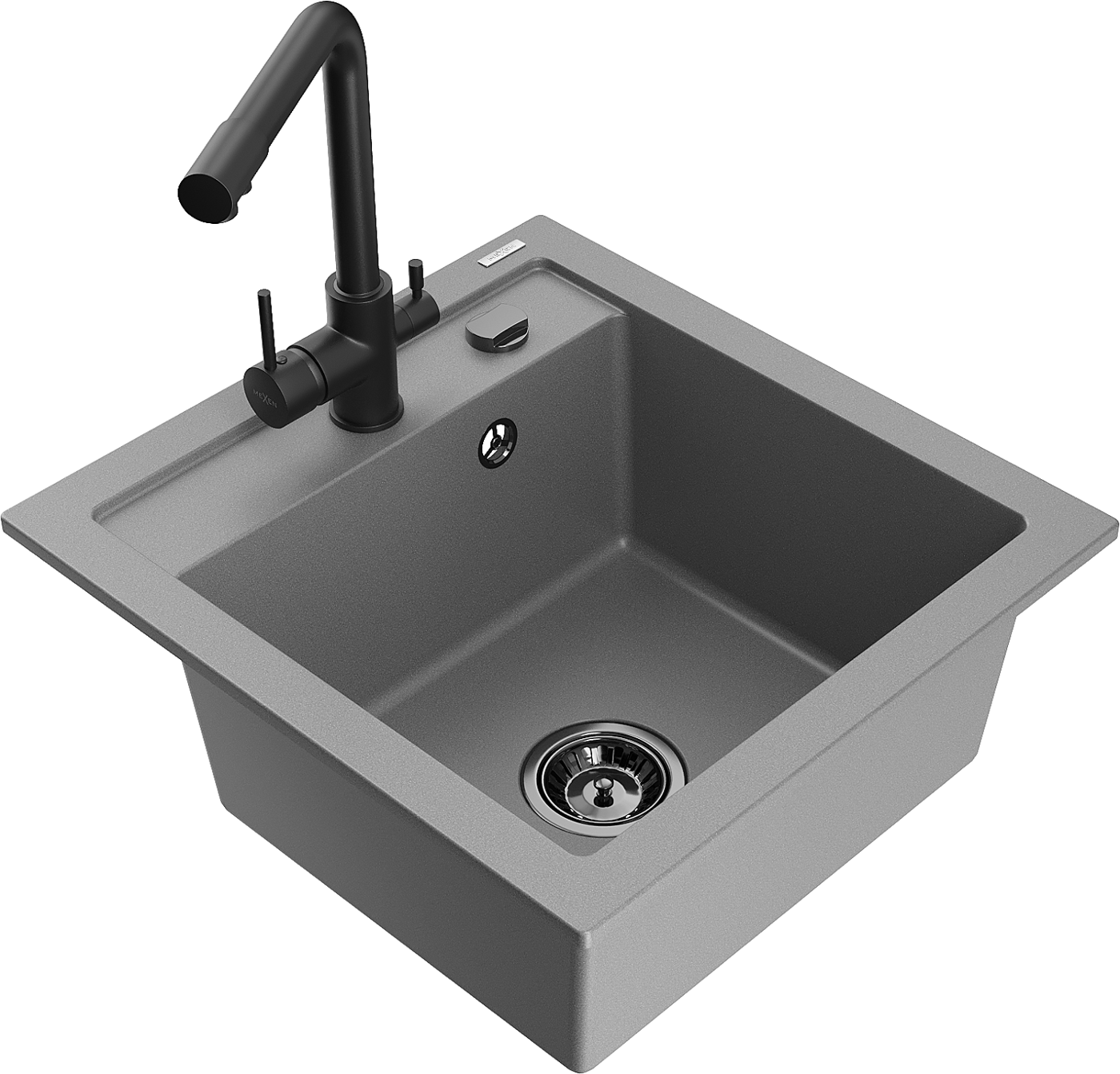 Mexen Vito évier en granit 1 bac avec robinet de cuisine Duero, gris - 6503-71-671600-70-B