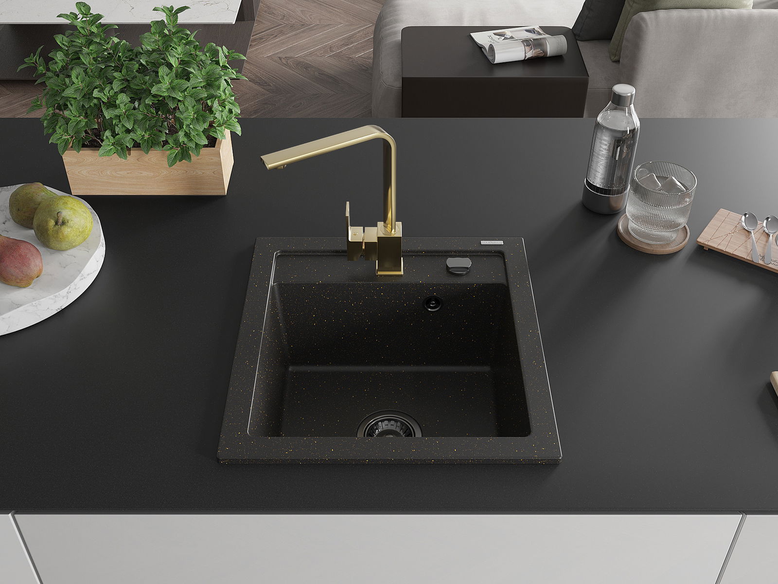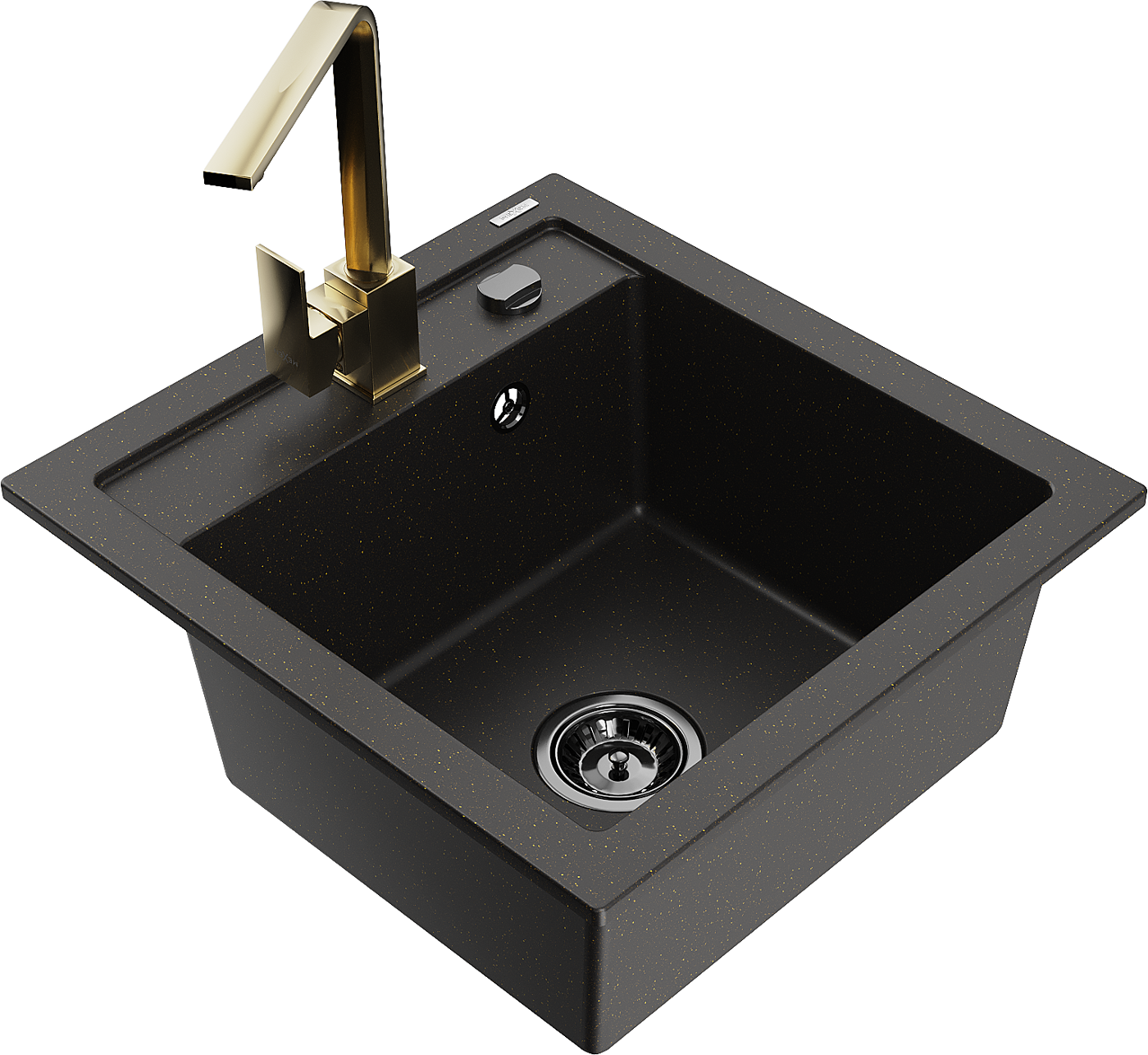 Mexen Vito évier en granit 1 cuve avec robinet de cuisine Rita, noir/or métallisé - 6503-75-670300-50-B