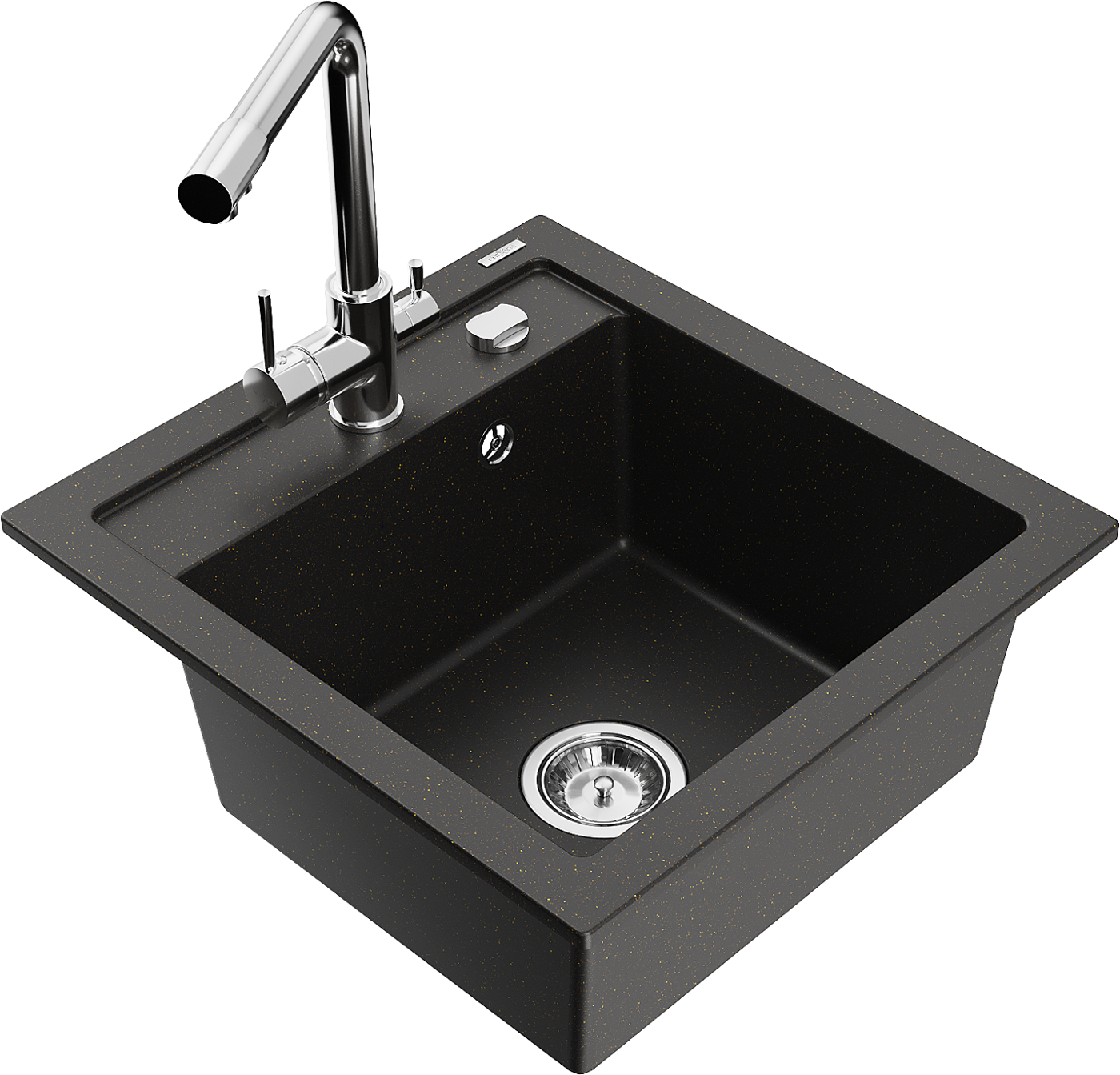 Mexen Vito évier en granit 1 bac avec robinet de cuisine Duero, noir/or métallisé - 6503-75-671600-00