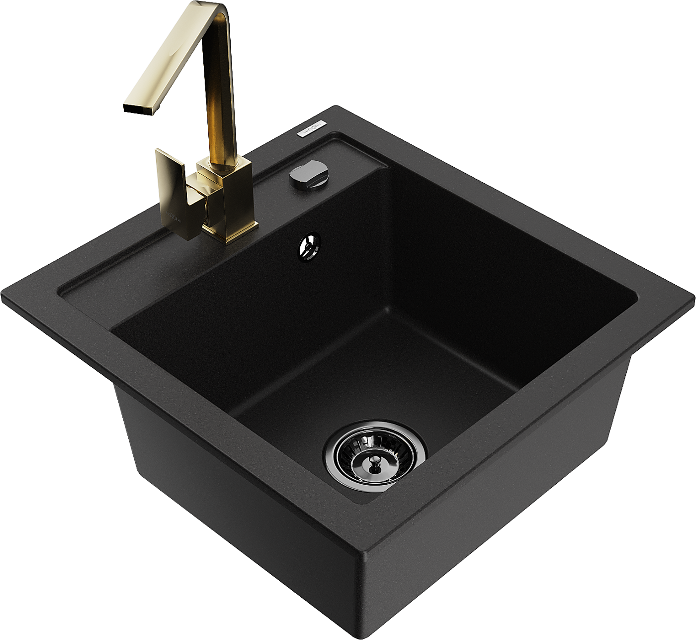 Mexen Vito évier en granit 1 bac avec robinet de cuisine Rita, noir - 6503-77-670300-50-B