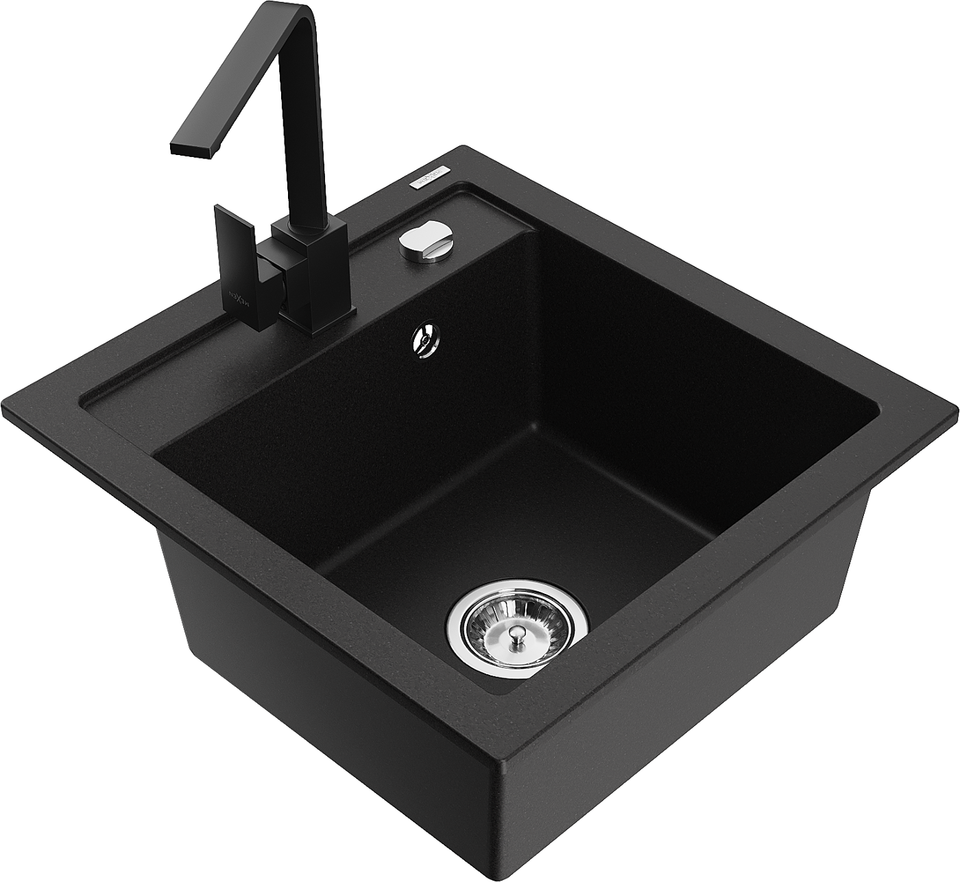 Mexen Vito évier en granit 1 bac avec robinet de cuisine Rita, noir - 6503-77-670300-70
