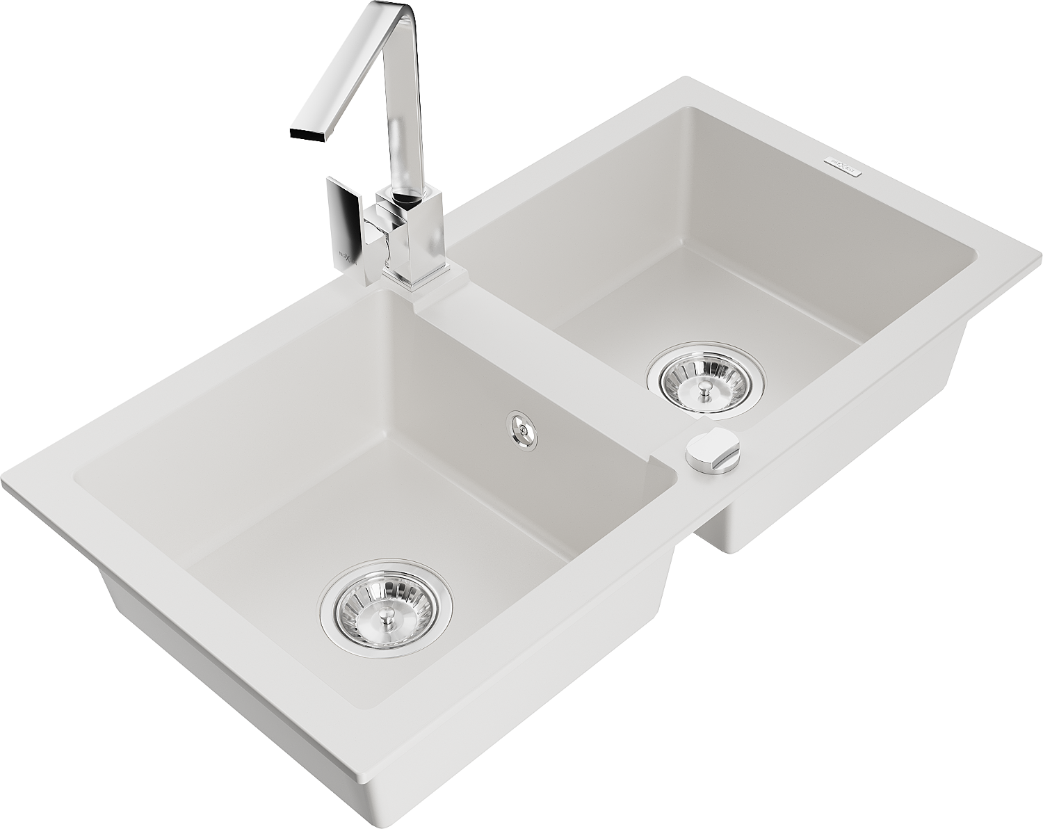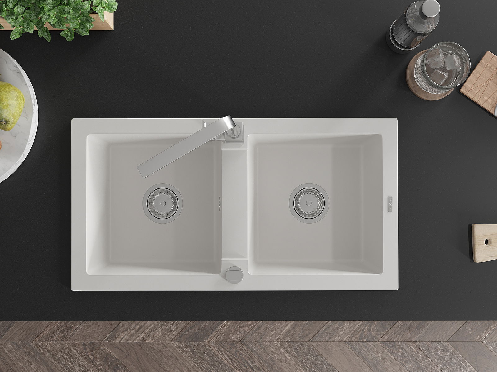 Mexen Mario évier en granit 2 bacs avec mitigeur de cuisine Rita, blanc - 6504-20-670300-00