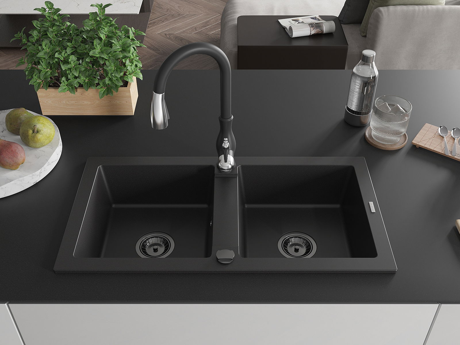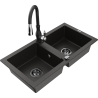 Mexen Mario évier en granit 2 bacs avec robinet de cuisine Savita, noir - 6504-77-672601-70-B