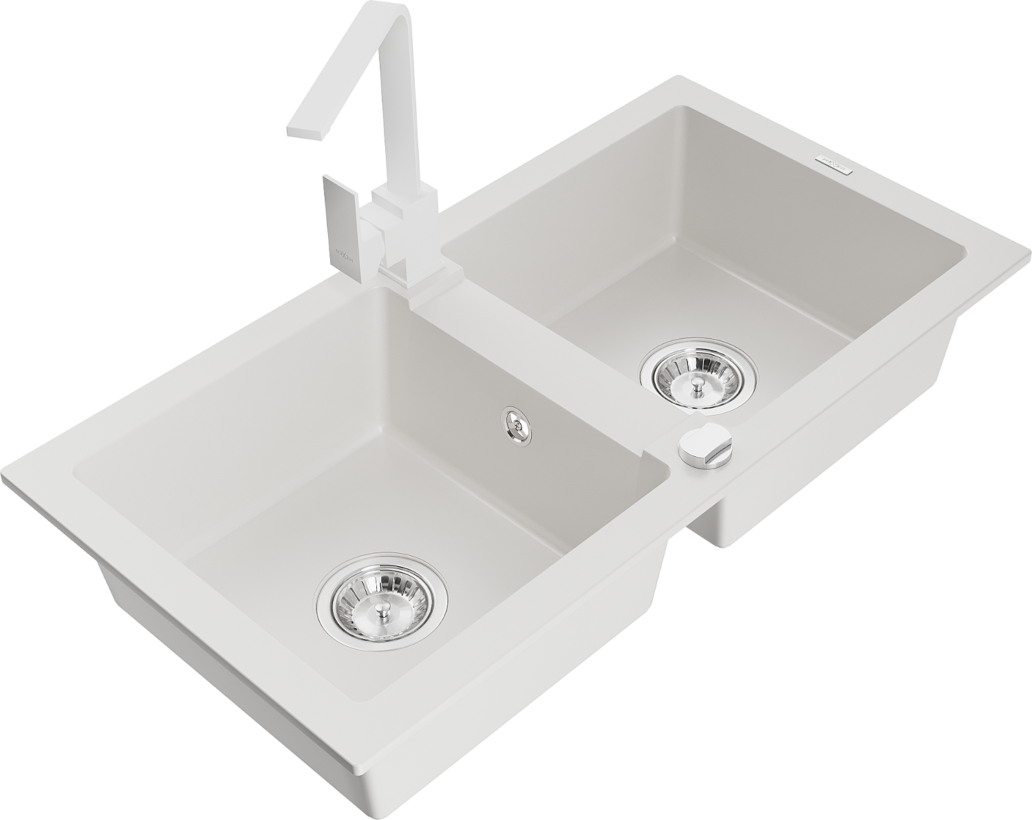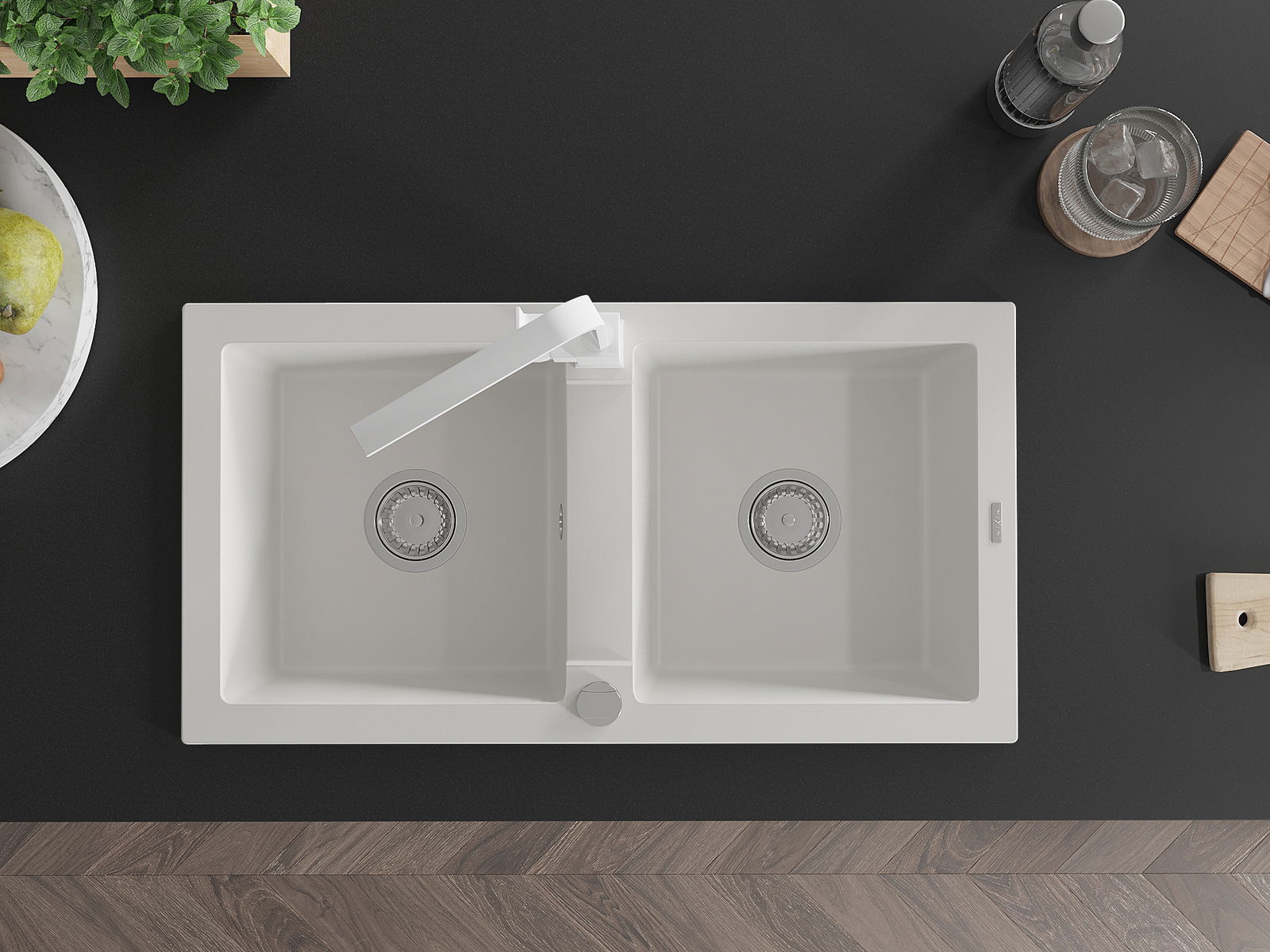 Mexen Mario évier en granit à 2 bacs avec robinet de cuisine Rita, blanc - 6504-20-670300-20