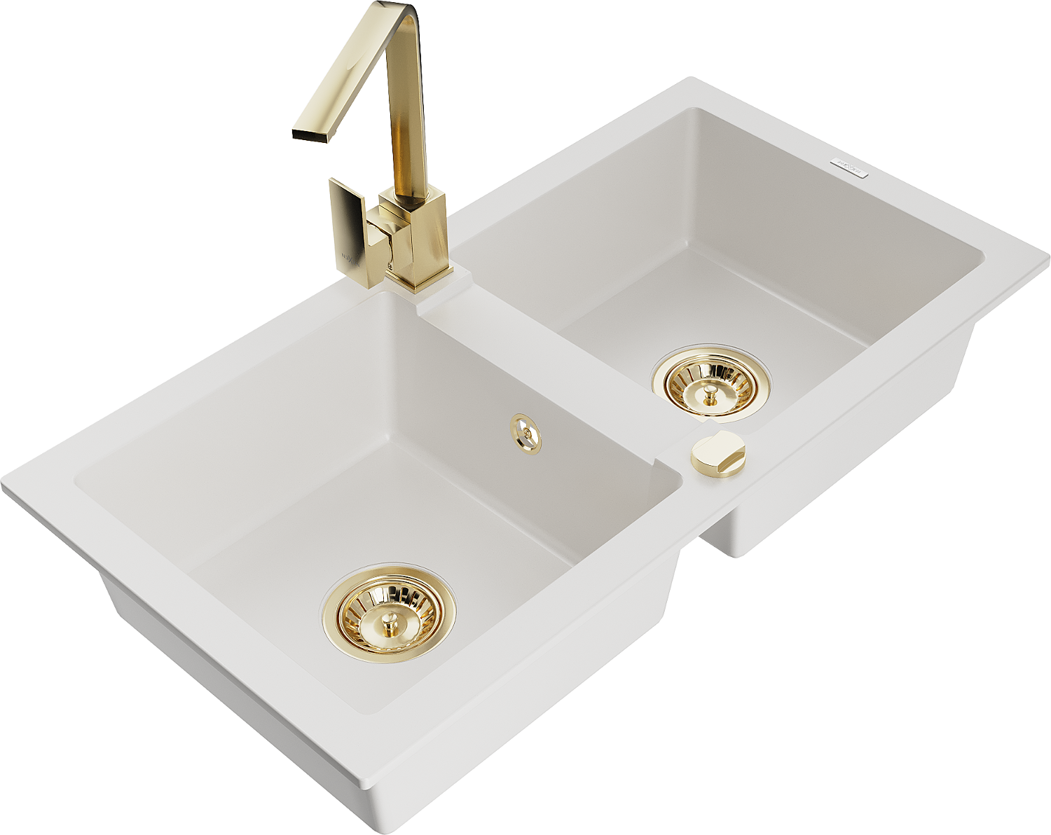 Mexen Mario évier en granit à 2 bacs avec robinet de cuisine Rita, blanc - 6504-20-670300-50