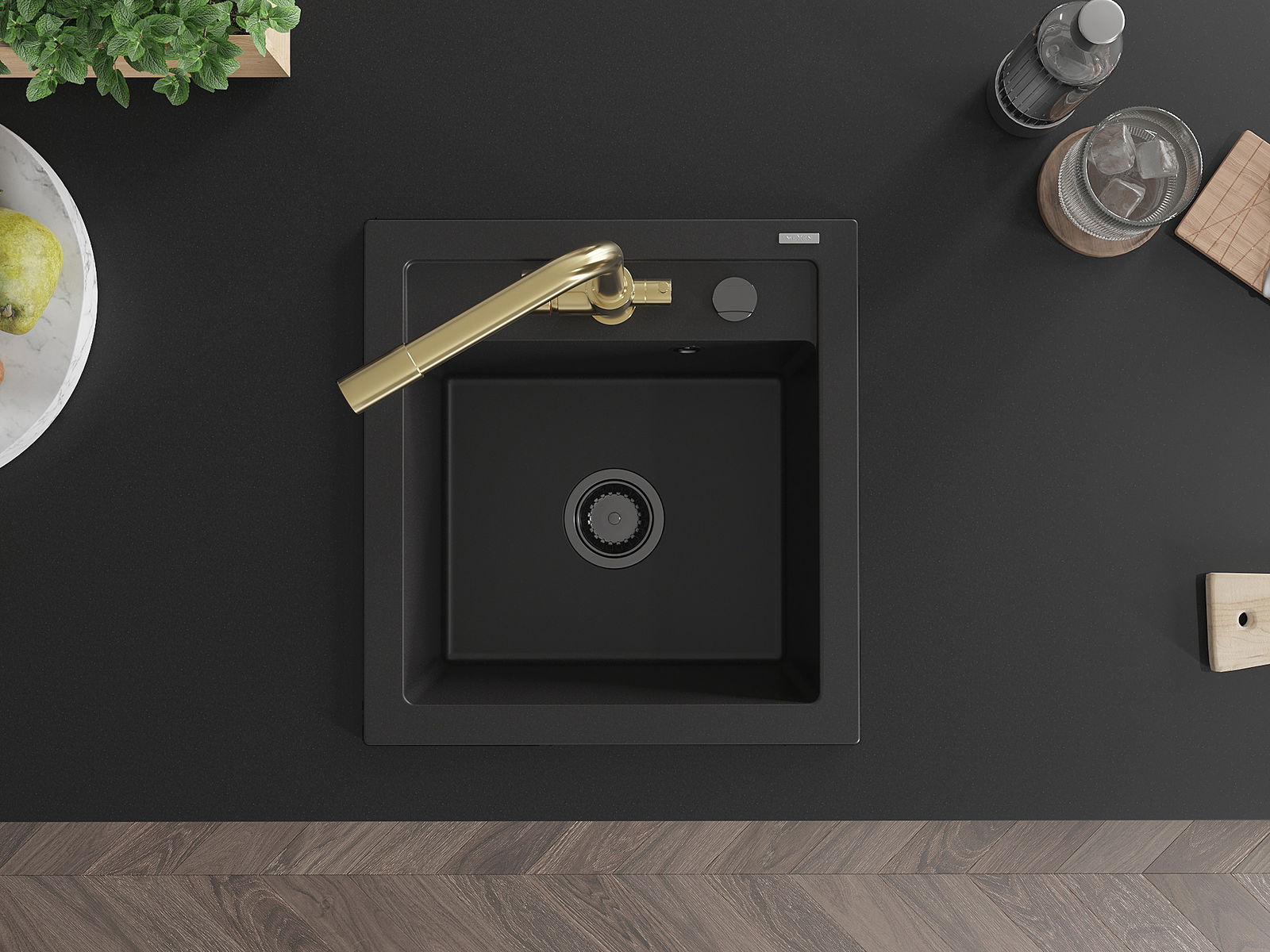 Mexen Vito évier en granit à 1 bac avec mitigeur de cuisine Duero, noir - 6503-77-671600-50-B