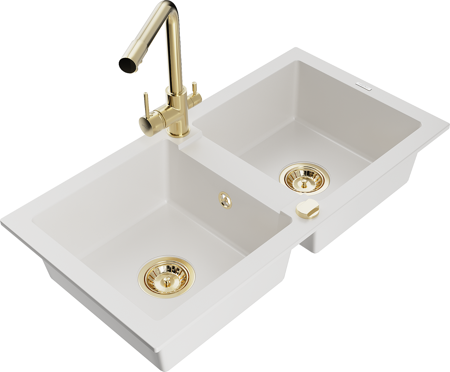 Mexen Mario évier en granit 2 bacs avec robinet de cuisine Duero, blanc - 6504-20-671600-50