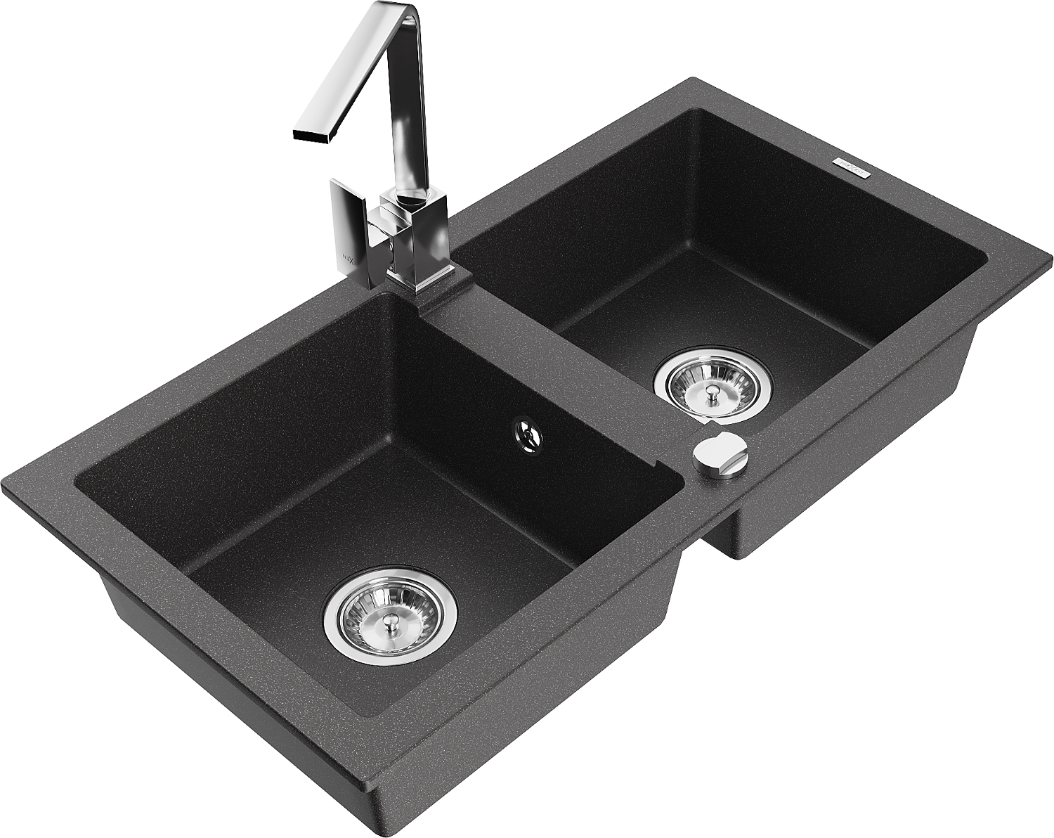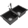 Mexen Mario évier en granit 2 bacs avec mitigeur de cuisine Rita, noir moucheté - 6504-76-670300-00