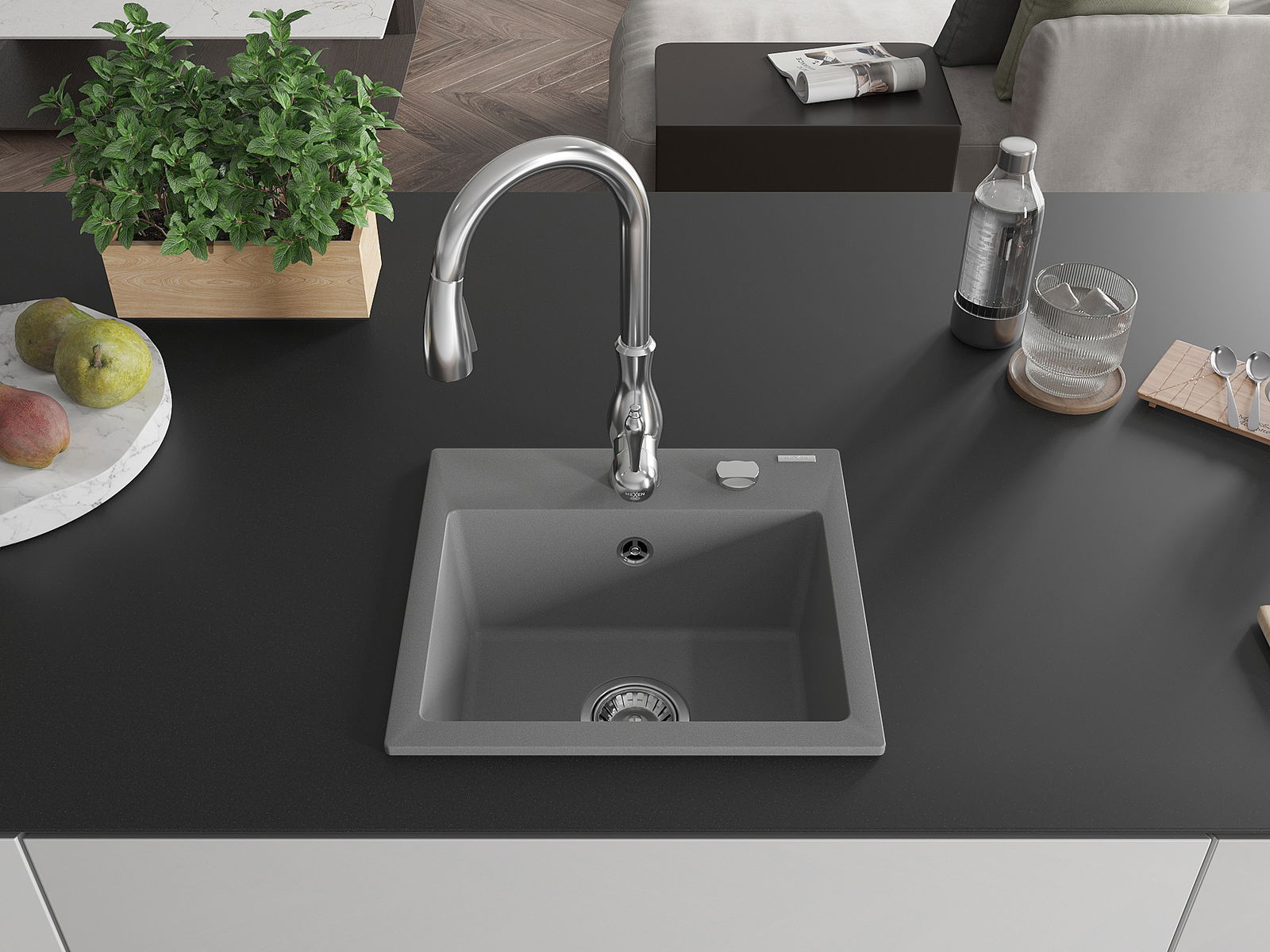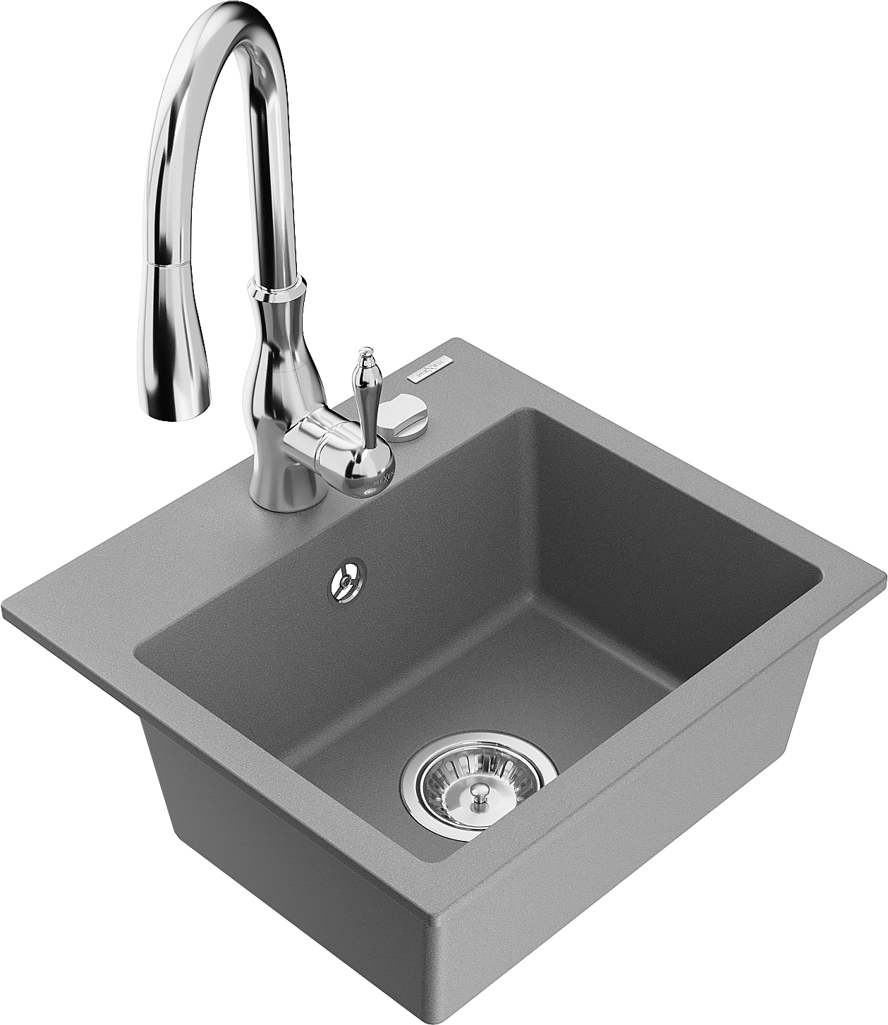 Mexen Milo évier en granit 1 bac avec robinet de cuisine Savita, gris - 6505-71-672601-00