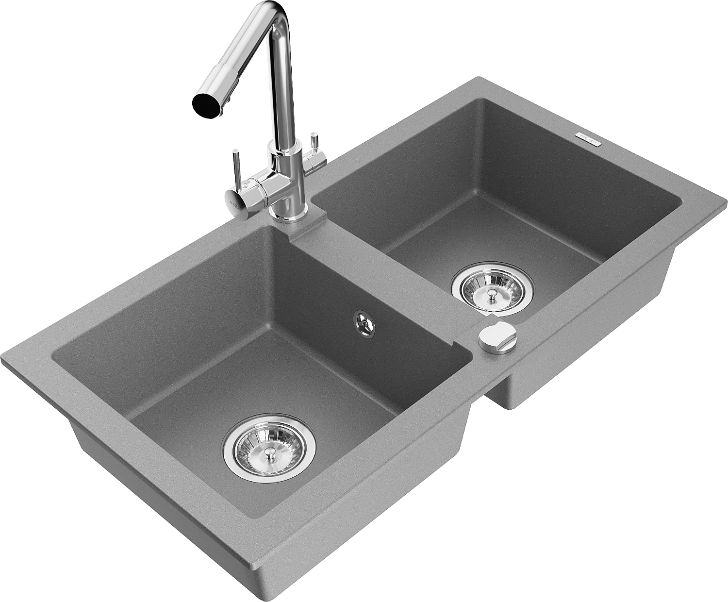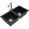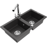 Mexen Mario évier en granit 2 bacs avec robinet de cuisine Duero, gris - 6504-71-671600-00