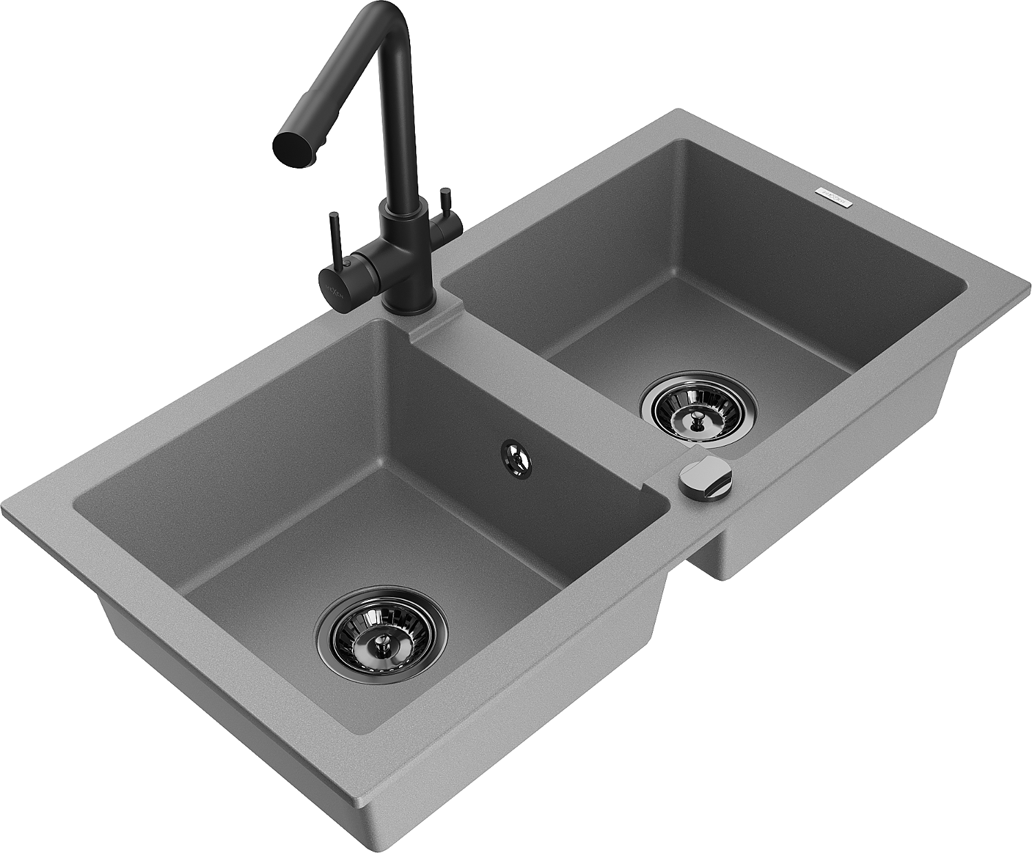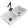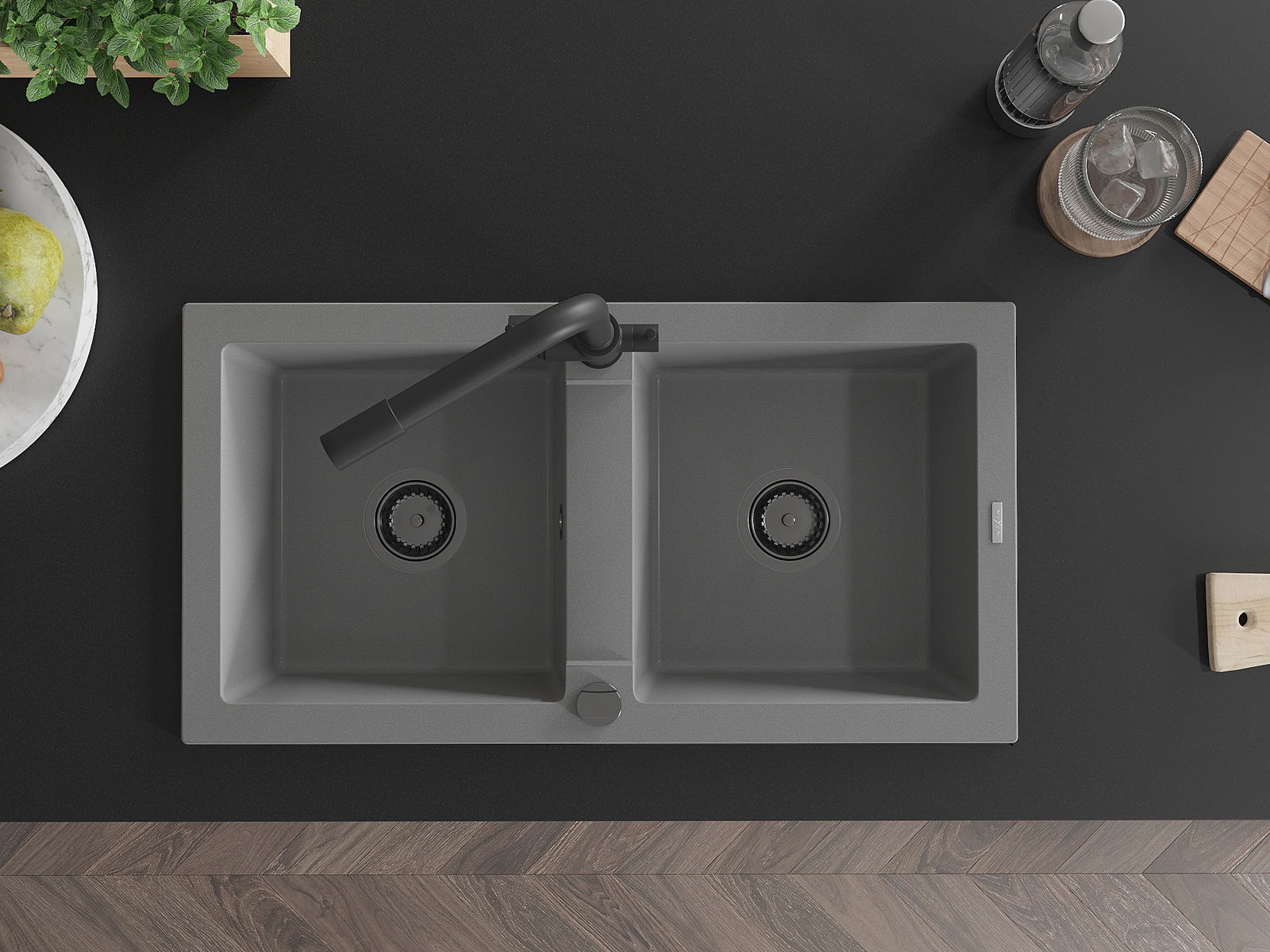Mexen Mario évier en granit à 2 bacs avec robinet de cuisine Duero, gris - 6504-71-671600-70-B