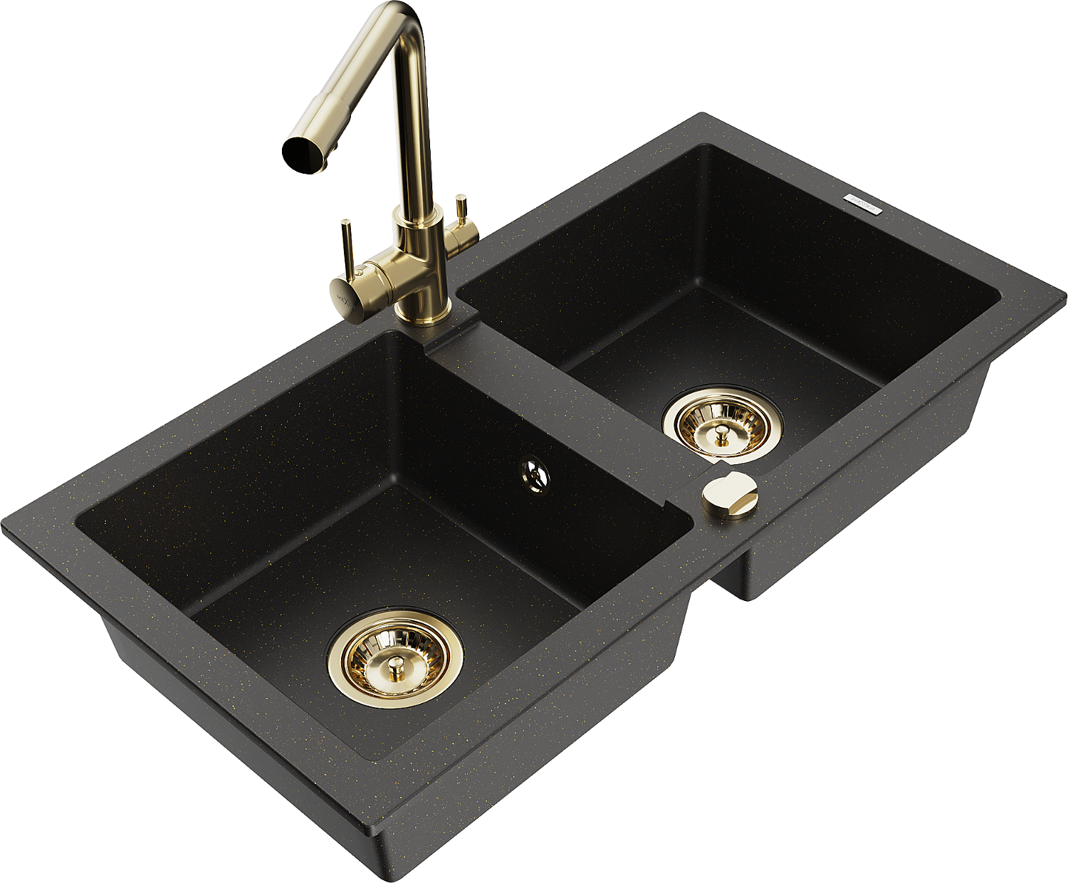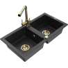 Mexen Mario évier de cuisine en granit à 2 cuves avec robinet de cuisine Duero, noir/doré métallisé - 6504-75-671600-50