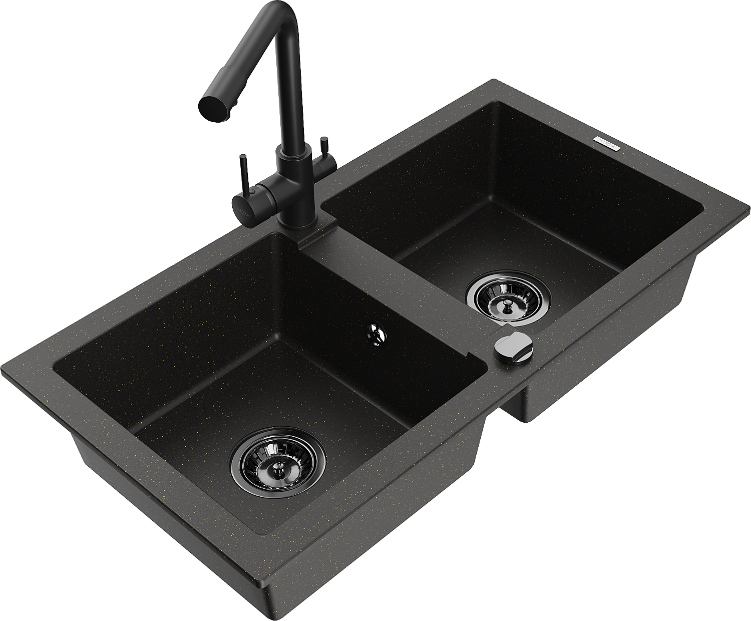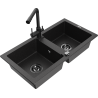 Mexen Mario évier en granit 2-bassins avec robinet de cuisine Duero, noir/or métallique - 6504-75-671600-70-B