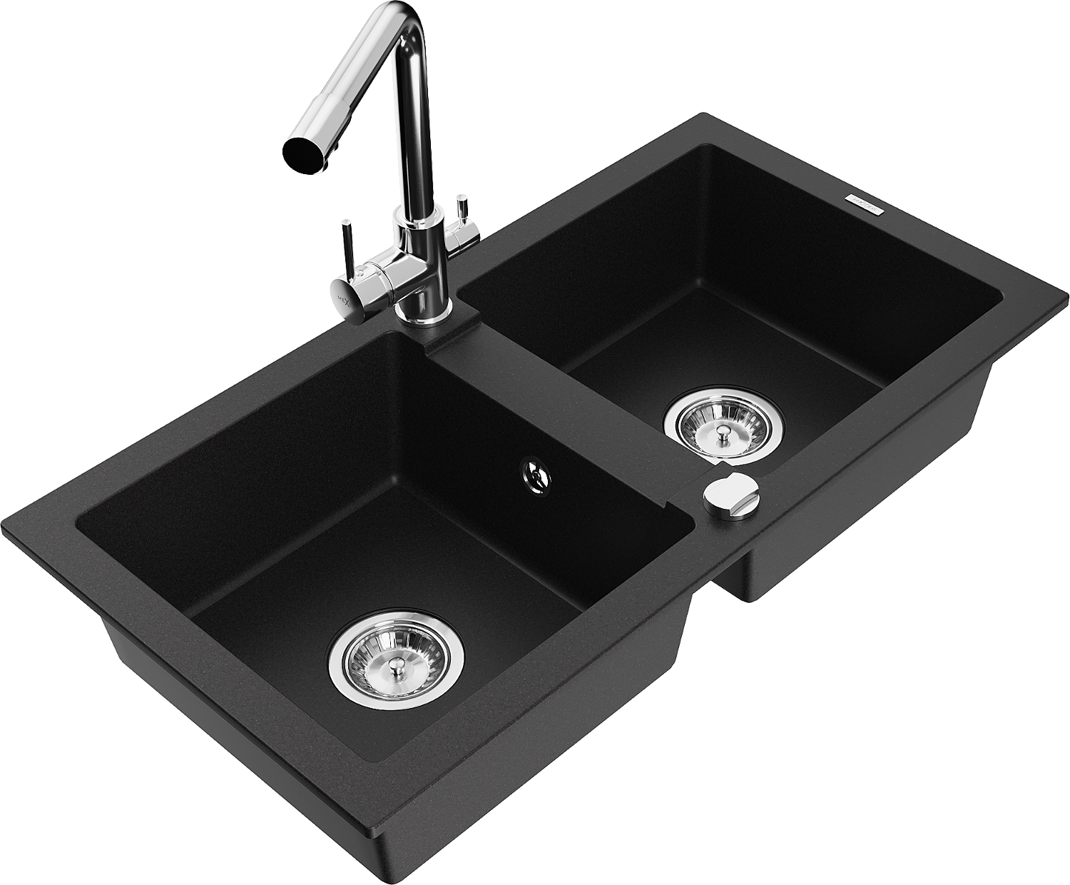 Mexen Mario évier en granit 2 bacs avec robinet de cuisine Duero, noir - 6504-77-671600-00