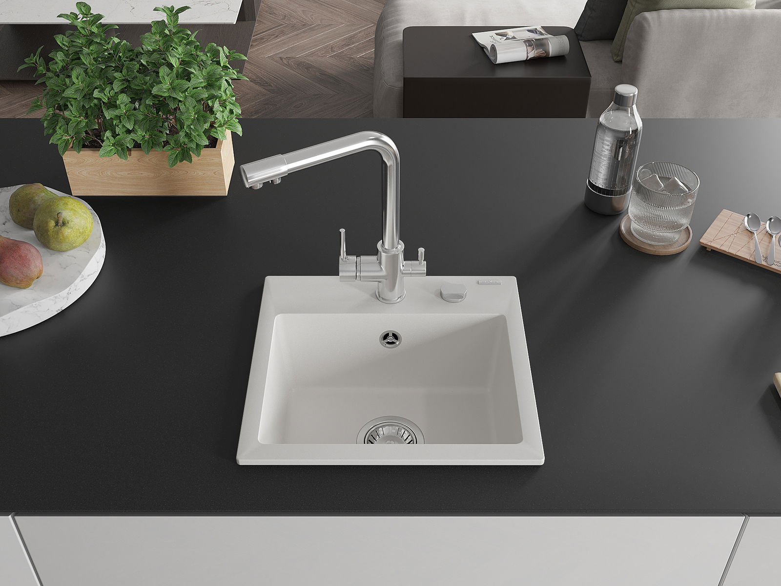 Mexen Milo évier en granit à 1 bac avec mitigeur de cuisine Duero, blanc - 6505-20-671600-00