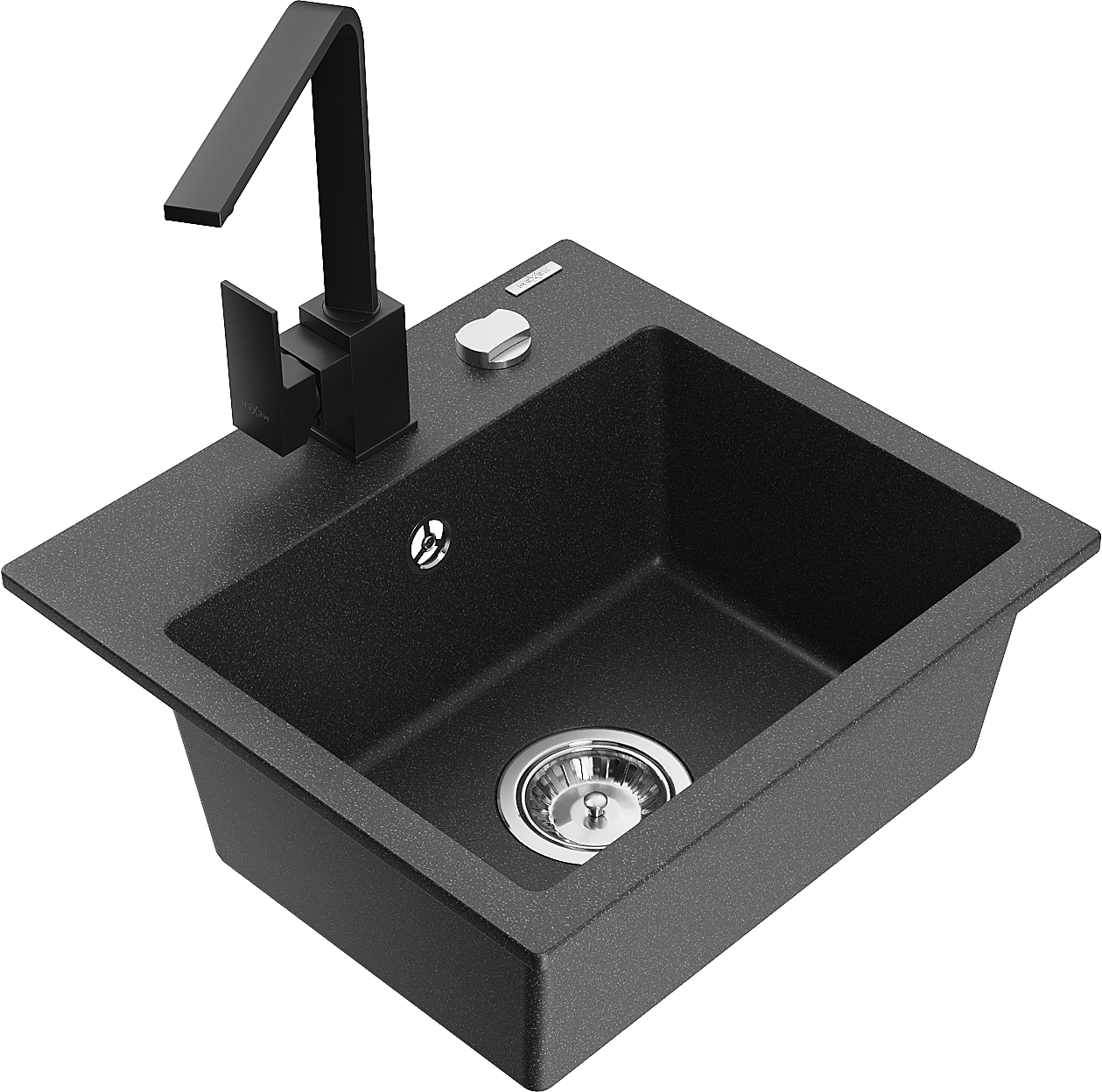 Mexen Milo évier en granit 1 bac avec mitigeur de cuisine Rita, noir moucheté - 6505-76-670300-70