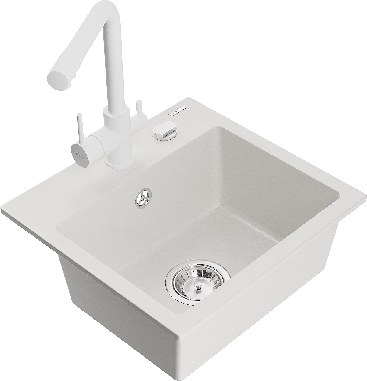 Mexen Milo évier en granit 1-bac avec robinet de cuisine Duero, blanc - 6505-20-671600-20