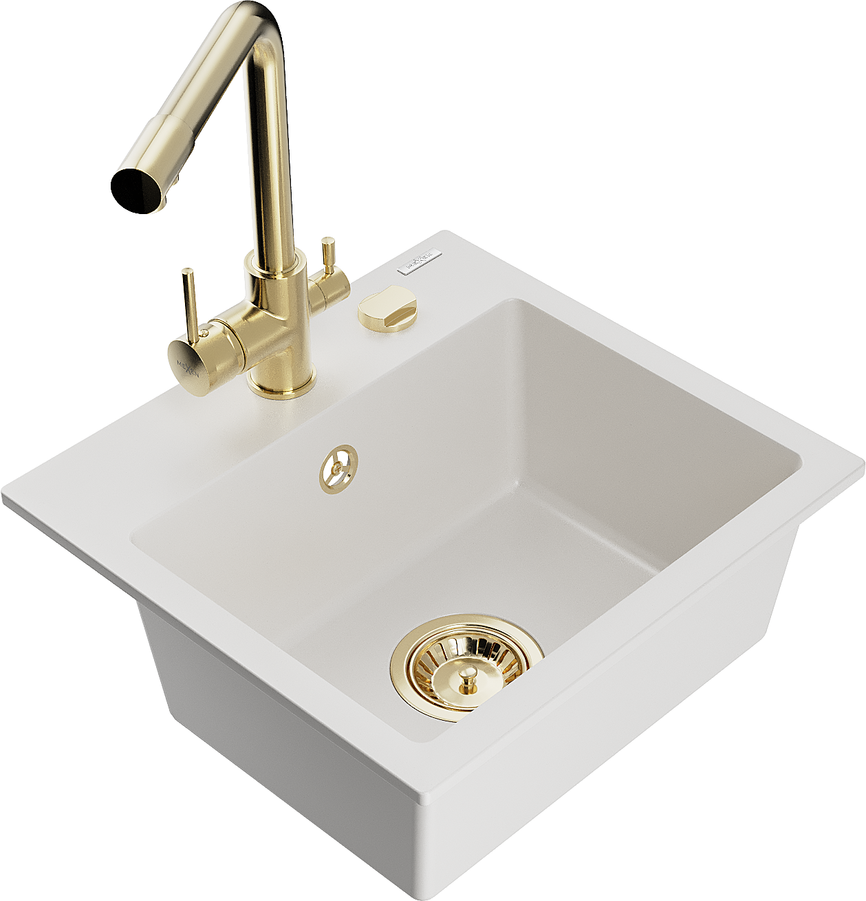 Mexen Milo évier en granit 1 bac avec robinet de cuisine Duero, blanc - 6505-20-671600-50
