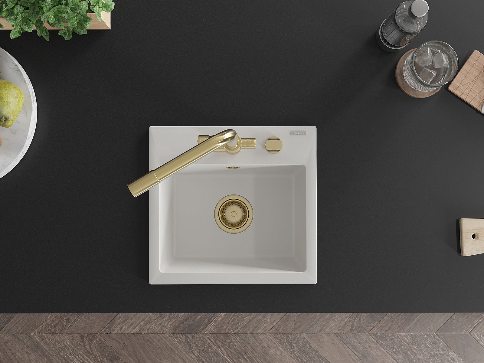 L'évier a un trou sous-meulé de 35 mm de diamètre à percer soi-même. Il peut être utilisé, entre autres, pour installer un distributeur de liquide, ce qui éliminera la présence de bouteilles en plastique dans la cuisine et lui donnera une finition élégante.