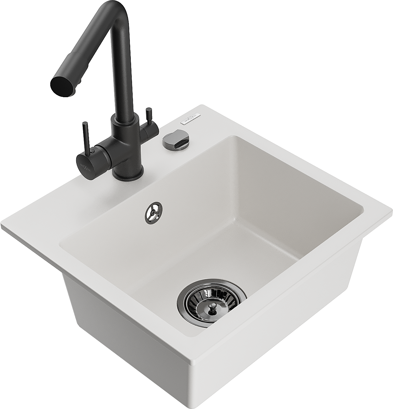 Mexen Milo évier en granit 1 bac avec robinet de cuisine Duero, blanc - 6505-20-671600-70