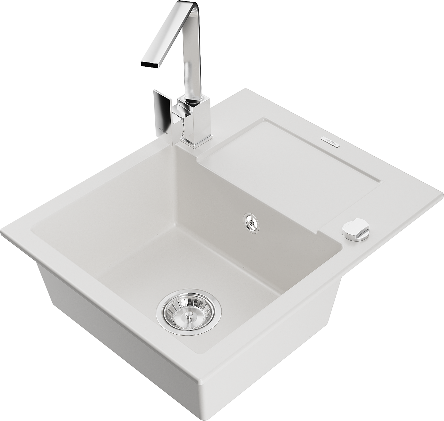 Mexen Enzo évier en granit 1 bac avec égouttoir et mitigeur de cuisine Rita, blanc - 6506-20-670300-00