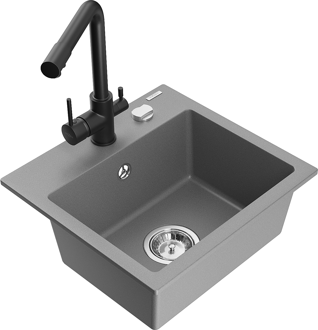 Mexen Milo évier en granit 1 bac avec mitigeur de cuisine Duero, gris - 6505-71-671600-70