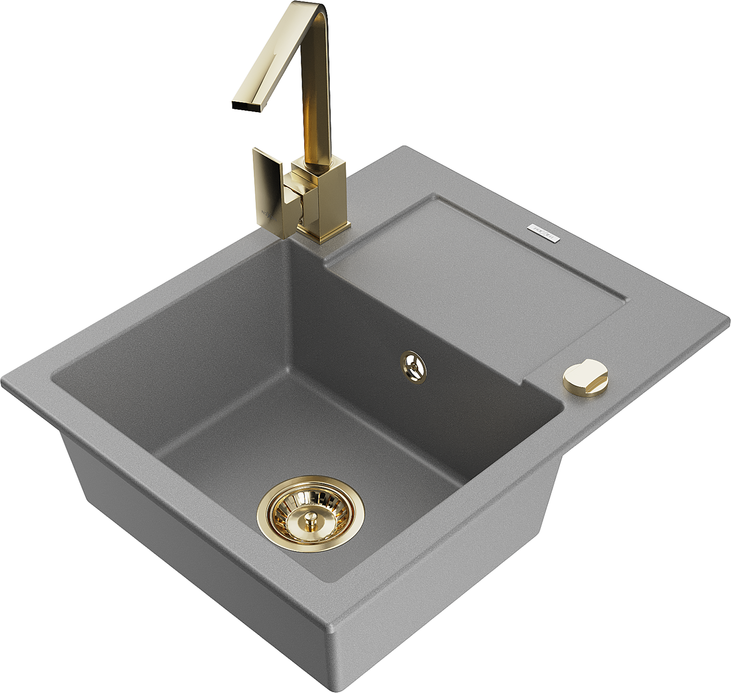 Mexen Enzo évier en granit 1 bac avec égouttoir et robinet de cuisine Rita, gris - 6506-71-670300-50