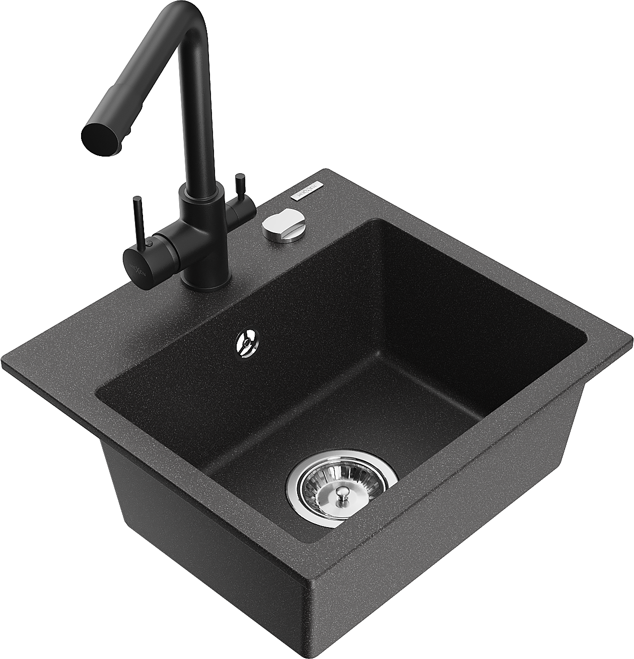 Mexen Milo évier en granit à 1 bac avec mitigeur de cuisine Duero, noir moucheté - 6505-76-671600-70