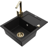Mexen Enzo évier de cuisine en granit 1 bac avec égouttoir et mitigeur Rita, noir/or métallisé - 6506-75-670300-50